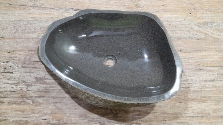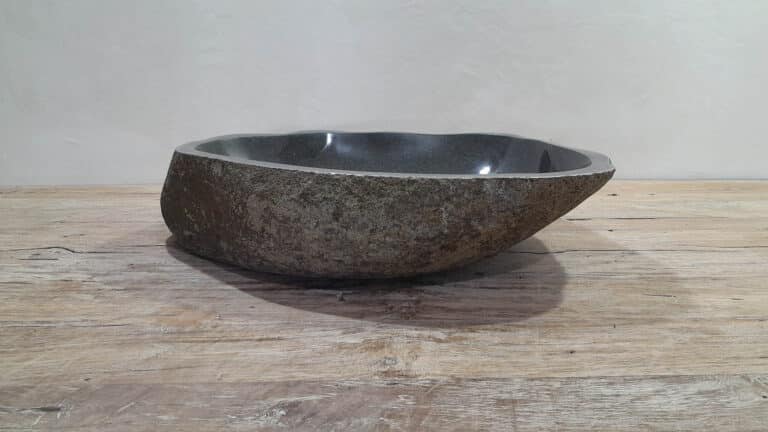Middelgrote natuursteen waskom van Riviersteen. Deze rivierstenen waskom van is perfect voor kleine tot middelgrote badkamermeubels. Elke rivierstenen waskom wordt met de hand vervaardigd uit massief natuursteen. De binnenzijde van de kom wordt glad gepolijst voor een snelle waterafvoer en eenvoudig onderhoud, de buitenzijde blijft ruw en onbewerkt waardoor de kom zijn robuuste en natuurlijke karakter behoudt.