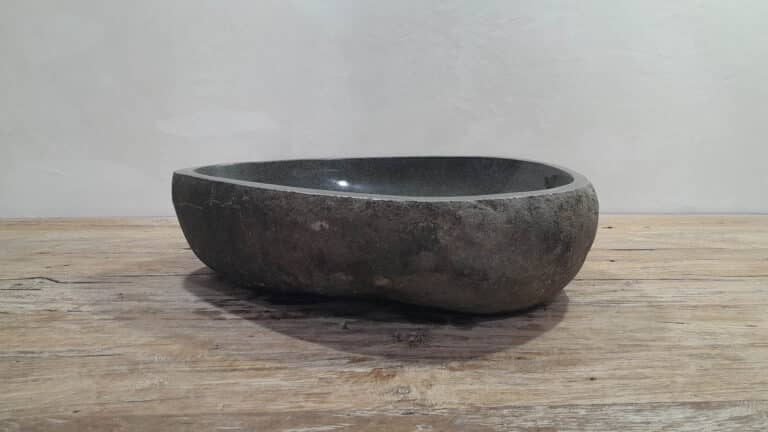 Middelgrote natuursteen waskom van Riviersteen. Deze rivierstenen waskom van is perfect voor kleine tot middelgrote badkamermeubels. Elke rivierstenen waskom wordt met de hand vervaardigd uit massief natuursteen. De binnenzijde van de kom wordt glad gepolijst voor een snelle waterafvoer en eenvoudig onderhoud, de buitenzijde blijft ruw en onbewerkt waardoor de kom zijn robuuste en natuurlijke karakter behoudt.