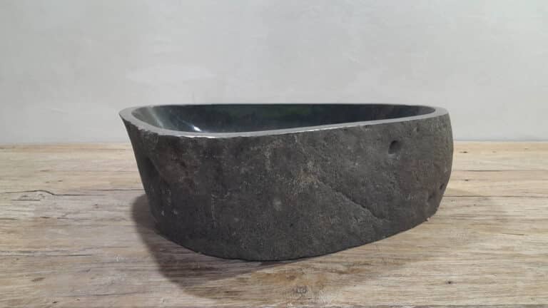 Middelgrote natuursteen waskom van Riviersteen. Deze rivierstenen waskom van is perfect voor kleine tot middelgrote badkamermeubels. Elke rivierstenen waskom wordt met de hand vervaardigd uit massief natuursteen. De binnenzijde van de kom wordt glad gepolijst voor een snelle waterafvoer en eenvoudig onderhoud, de buitenzijde blijft ruw en onbewerkt waardoor de kom zijn robuuste en natuurlijke karakter behoudt.