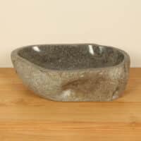 Middelgrote natuursteen waskom van Riviersteen. Deze rivierstenen waskom van is perfect voor kleine tot middelgrote badkamermeubels. Elke rivierstenen waskom wordt met de hand vervaardigd uit massief natuursteen. De binnenzijde van de kom wordt glad gepolijst voor een snelle waterafvoer en eenvoudig onderhoud, de buitenzijde blijft ruw en onbewerkt waardoor de kom zijn robuuste en natuurlijke karakter behoudt.