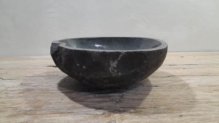 Middelgrote natuursteen waskom van Riviersteen. Deze rivierstenen waskom van is perfect voor kleine tot middelgrote badkamermeubels. Elke rivierstenen waskom wordt met de hand vervaardigd uit massief natuursteen. De binnenzijde van de kom wordt glad gepolijst voor een snelle waterafvoer en eenvoudig onderhoud, de buitenzijde blijft ruw en onbewerkt waardoor de kom zijn robuuste en natuurlijke karakter behoudt.