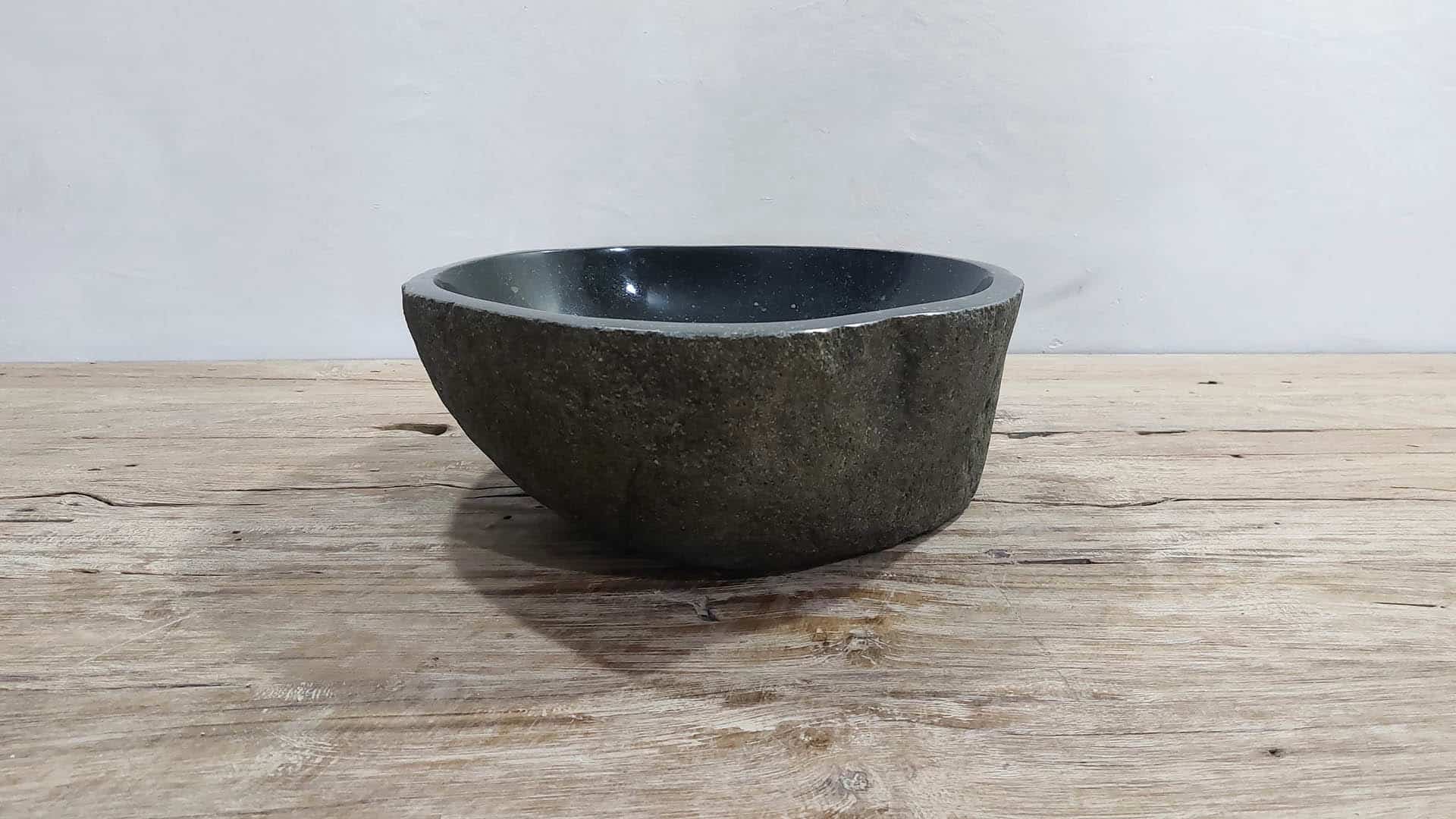 Middelgrote natuursteen waskom van Riviersteen. Deze rivierstenen waskom van is perfect voor kleine tot middelgrote badkamermeubels. Elke rivierstenen waskom wordt met de hand vervaardigd uit massief natuursteen. De binnenzijde van de kom wordt glad gepolijst voor een snelle waterafvoer en eenvoudig onderhoud, de buitenzijde blijft ruw en onbewerkt waardoor de kom zijn robuuste en natuurlijke karakter behoudt.