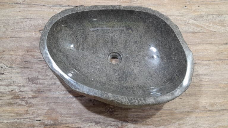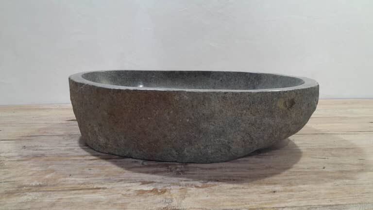 Middelgrote natuursteen waskom van Riviersteen. Deze rivierstenen waskom van is perfect voor kleine tot middelgrote badkamermeubels. Elke rivierstenen waskom wordt met de hand vervaardigd uit massief natuursteen. De binnenzijde van de kom wordt glad gepolijst voor een snelle waterafvoer en eenvoudig onderhoud, de buitenzijde blijft ruw en onbewerkt waardoor de kom zijn robuuste en natuurlijke karakter behoudt.