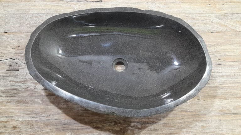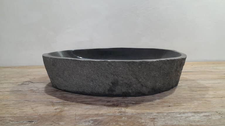 Middelgrote natuursteen waskom van Riviersteen. Deze rivierstenen waskom van is perfect voor kleine tot middelgrote badkamermeubels. Elke rivierstenen waskom wordt met de hand vervaardigd uit massief natuursteen. De binnenzijde van de kom wordt glad gepolijst voor een snelle waterafvoer en eenvoudig onderhoud, de buitenzijde blijft ruw en onbewerkt waardoor de kom zijn robuuste en natuurlijke karakter behoudt.