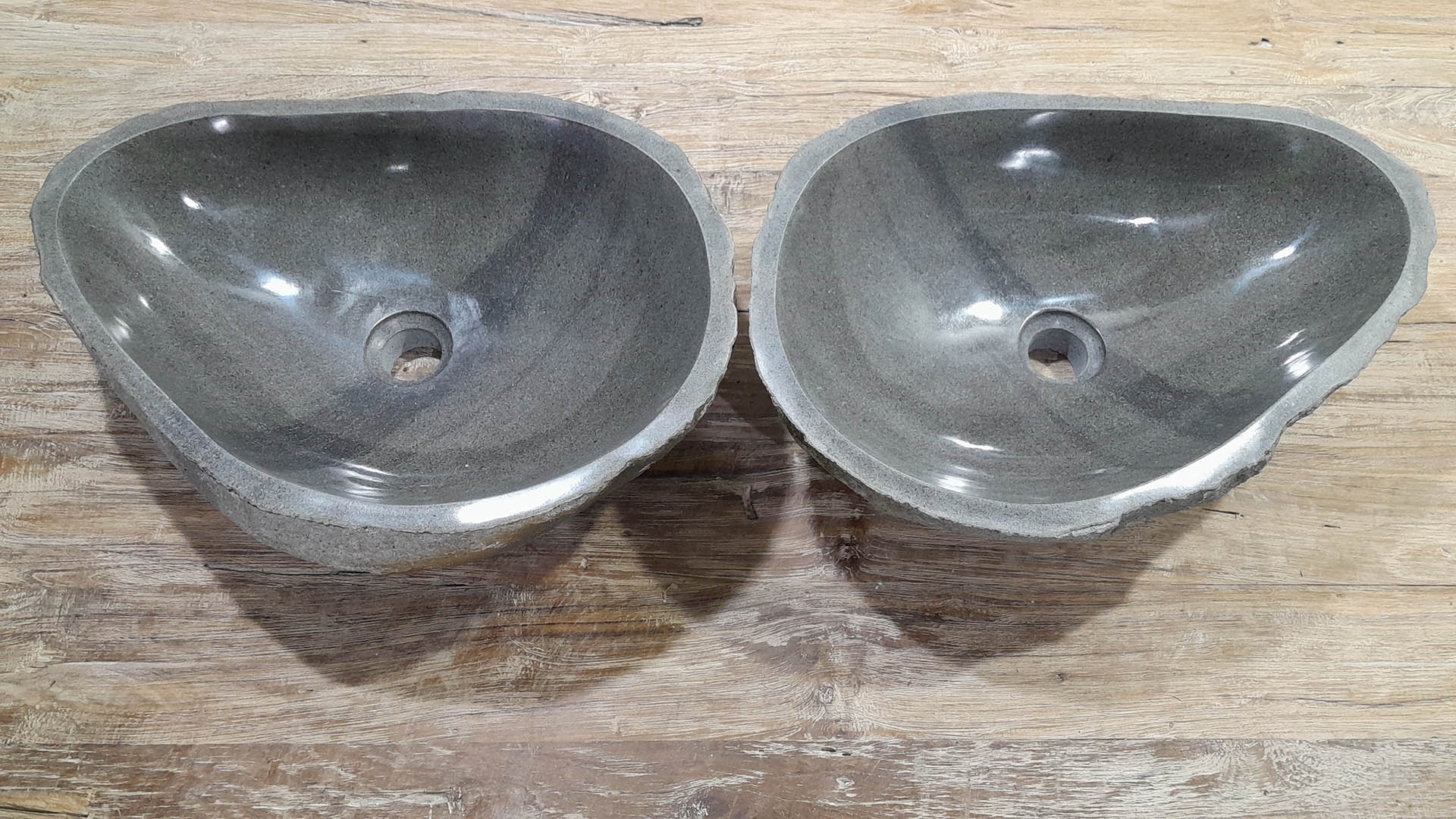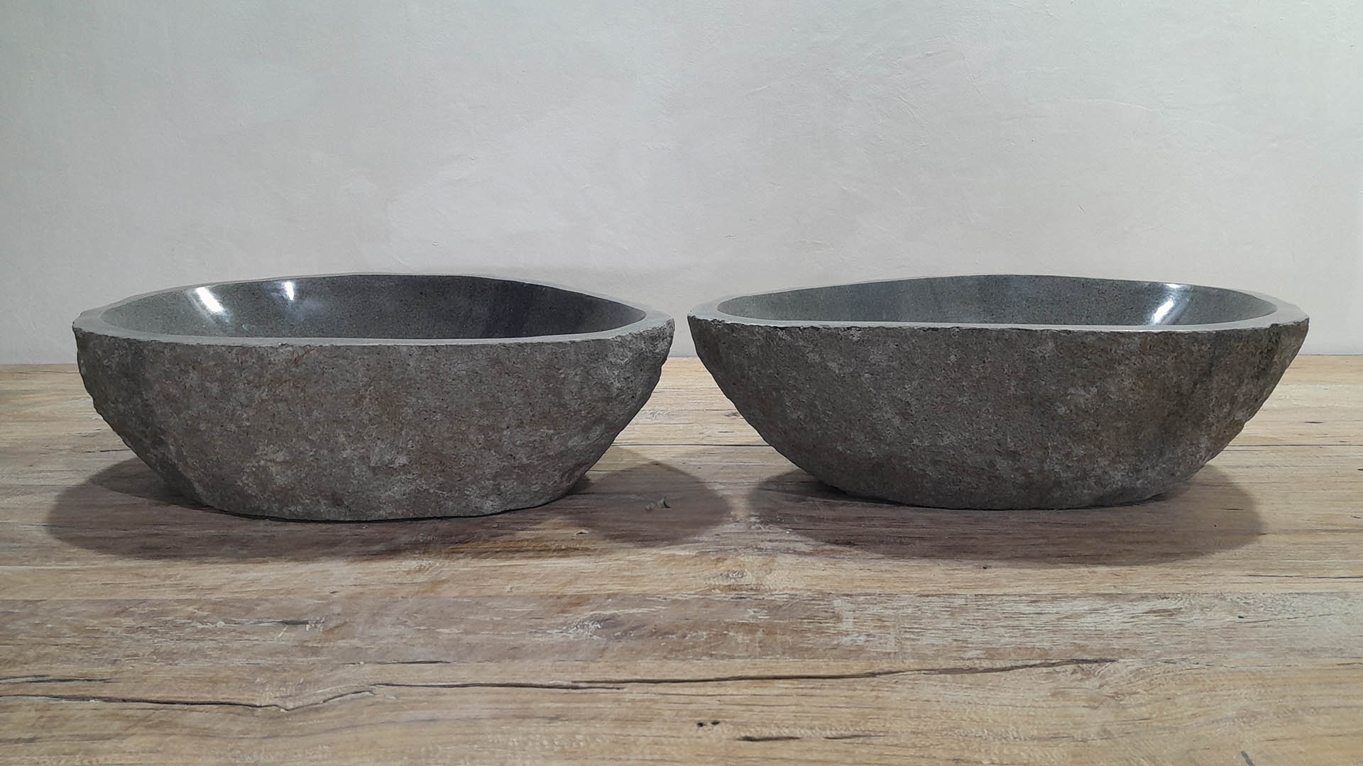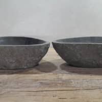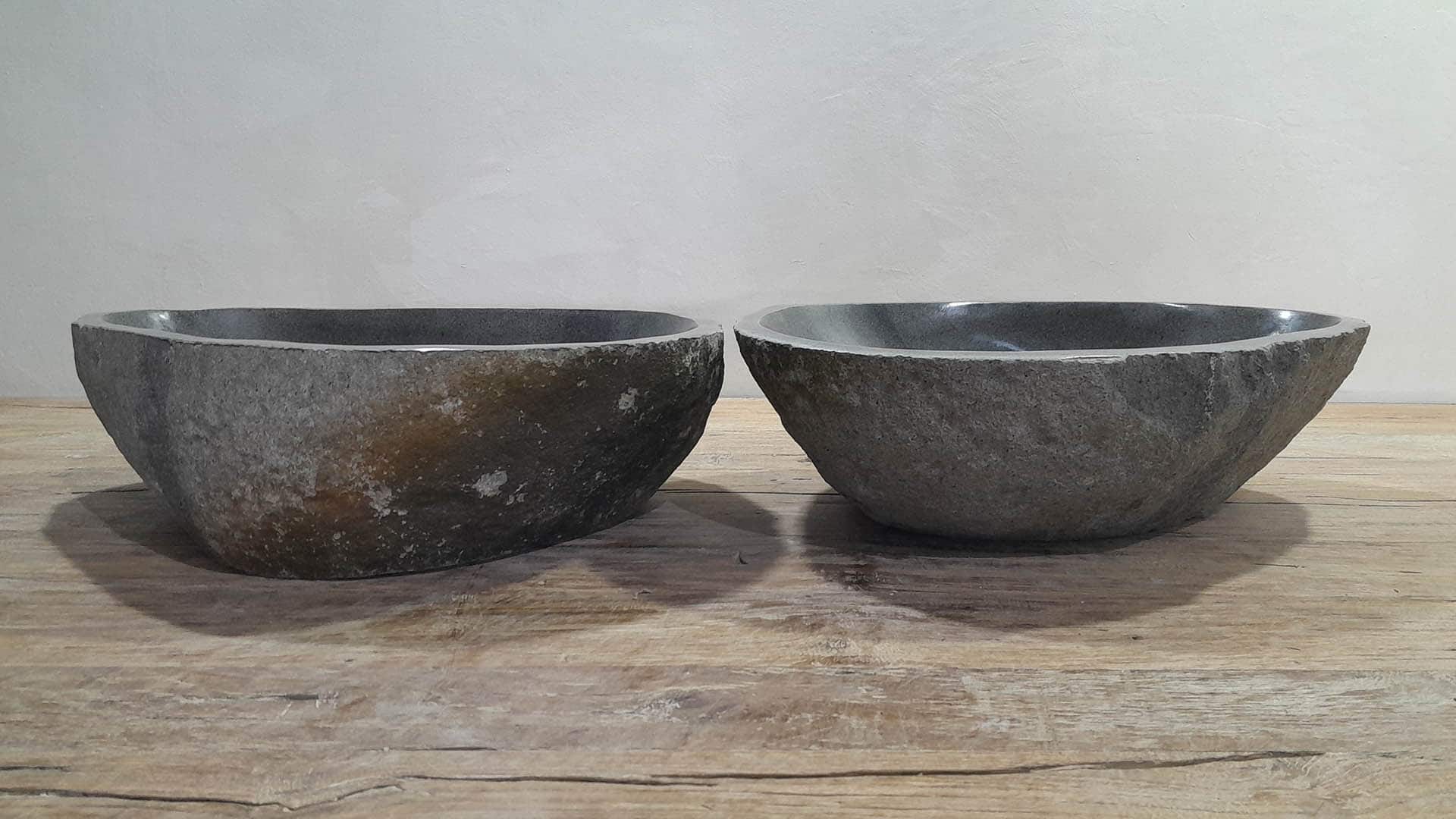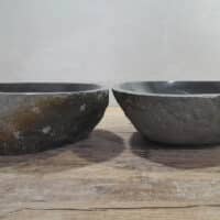 • Twee handgemaakte kommen uit één riviersteen