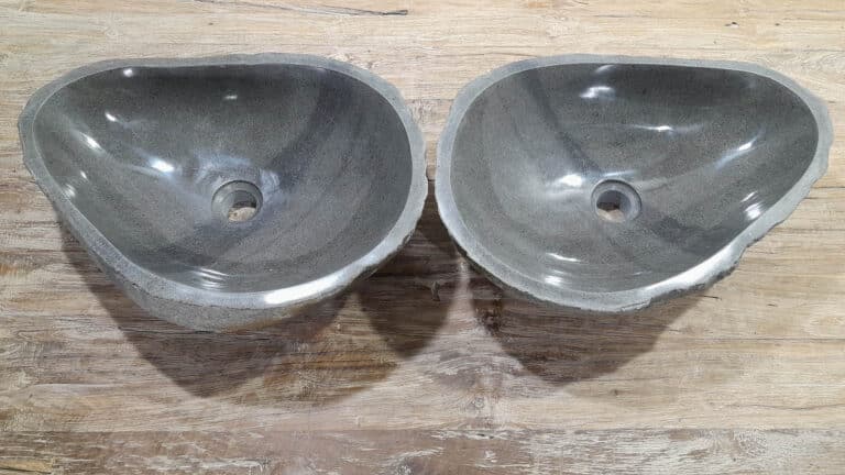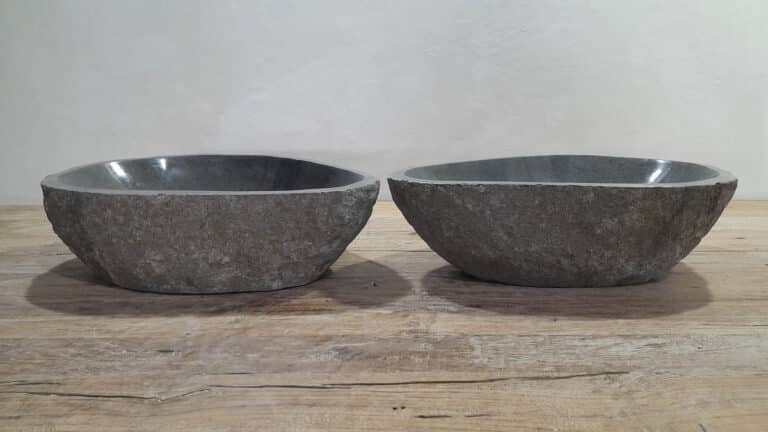 Met deze riviersteen waskom set haal je een bijzonder natuurproduct in huis. Deze set bestaat uit twee handgemaakte waskommen, vervaardigd uit één riviersteen. Zo sluiten de kleur, het formaat en de tekening in de natuursteen waskom perfect op elkaar aan, terwijl beide kommen hun eigen natuurlijke variatie behouden. Ideaal voor een tweepersoons badkamermeubel.