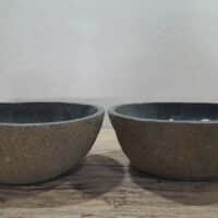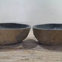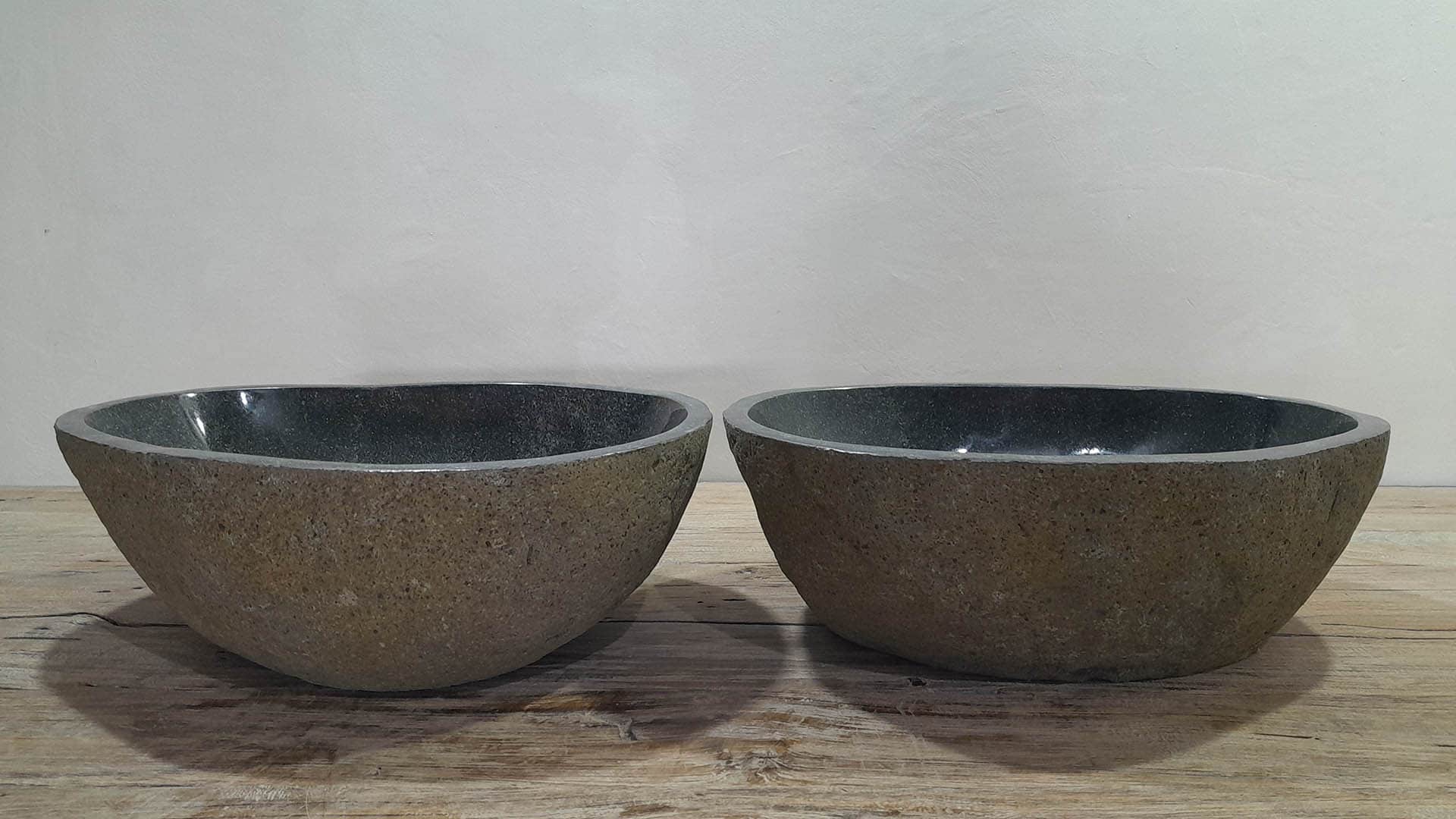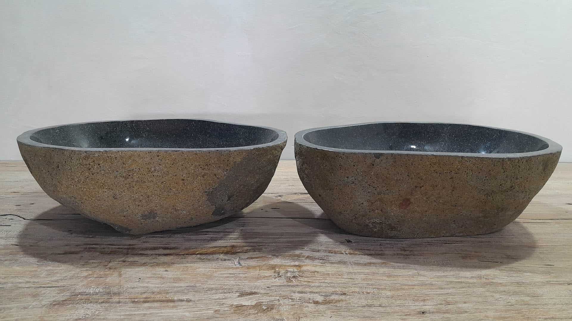 • Twee handgemaakte kommen uit één riviersteen