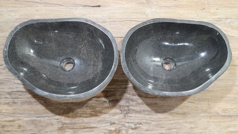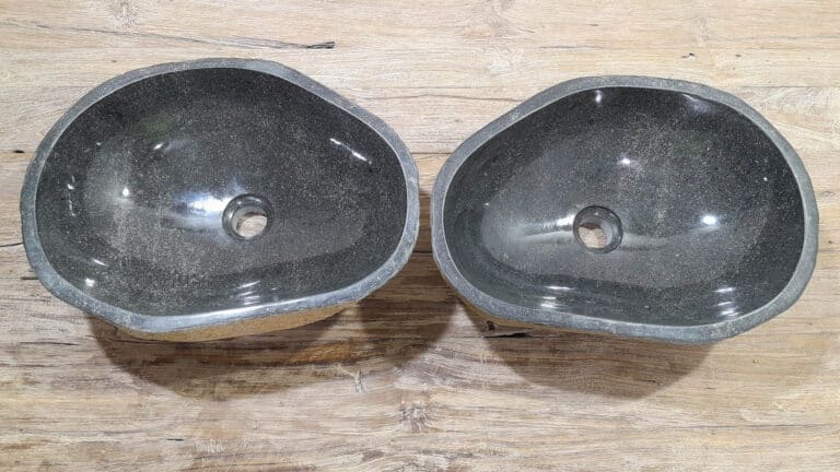 Met deze riviersteen waskom set haal je een bijzonder natuurproduct in huis. Deze set bestaat uit twee handgemaakte waskommen, vervaardigd uit één riviersteen. Zo sluiten de kleur, het formaat en de tekening in de natuursteen waskom perfect op elkaar aan, terwijl beide kommen hun eigen natuurlijke variatie behouden. Ideaal voor een tweepersoons badkamermeubel.