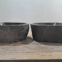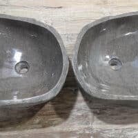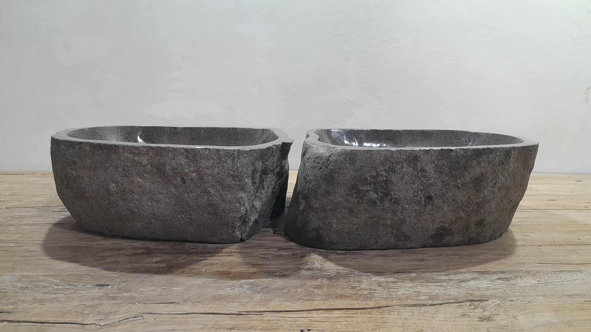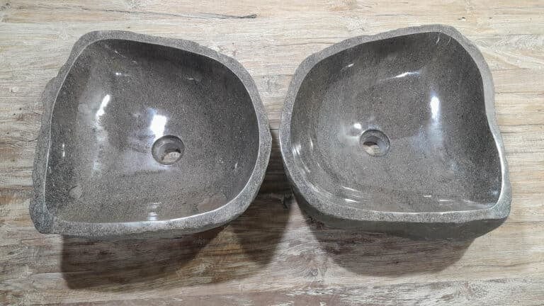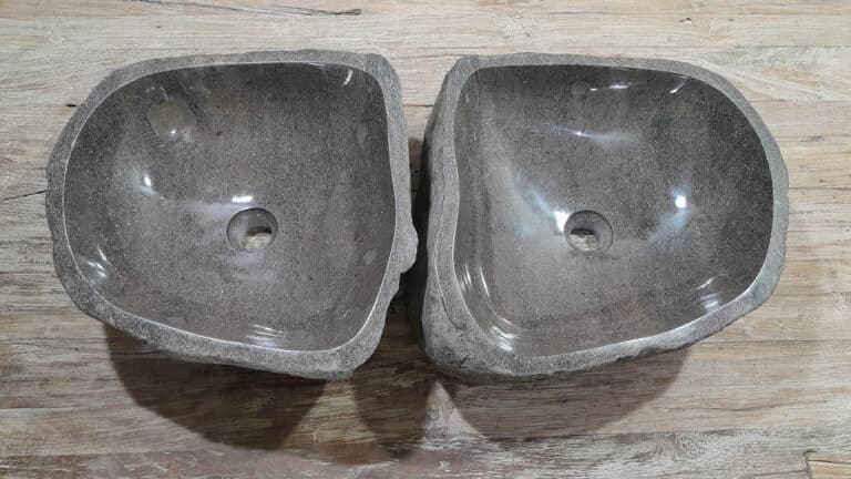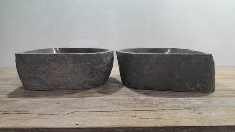 Met deze riviersteen waskom set haal je een bijzonder natuurproduct in huis. Deze set bestaat uit twee handgemaakte waskommen, vervaardigd uit één riviersteen. Zo sluiten de kleur, het formaat en de tekening in de natuursteen waskom perfect op elkaar aan, terwijl beide kommen hun eigen natuurlijke variatie behouden. Ideaal voor een tweepersoons badkamermeubel.