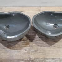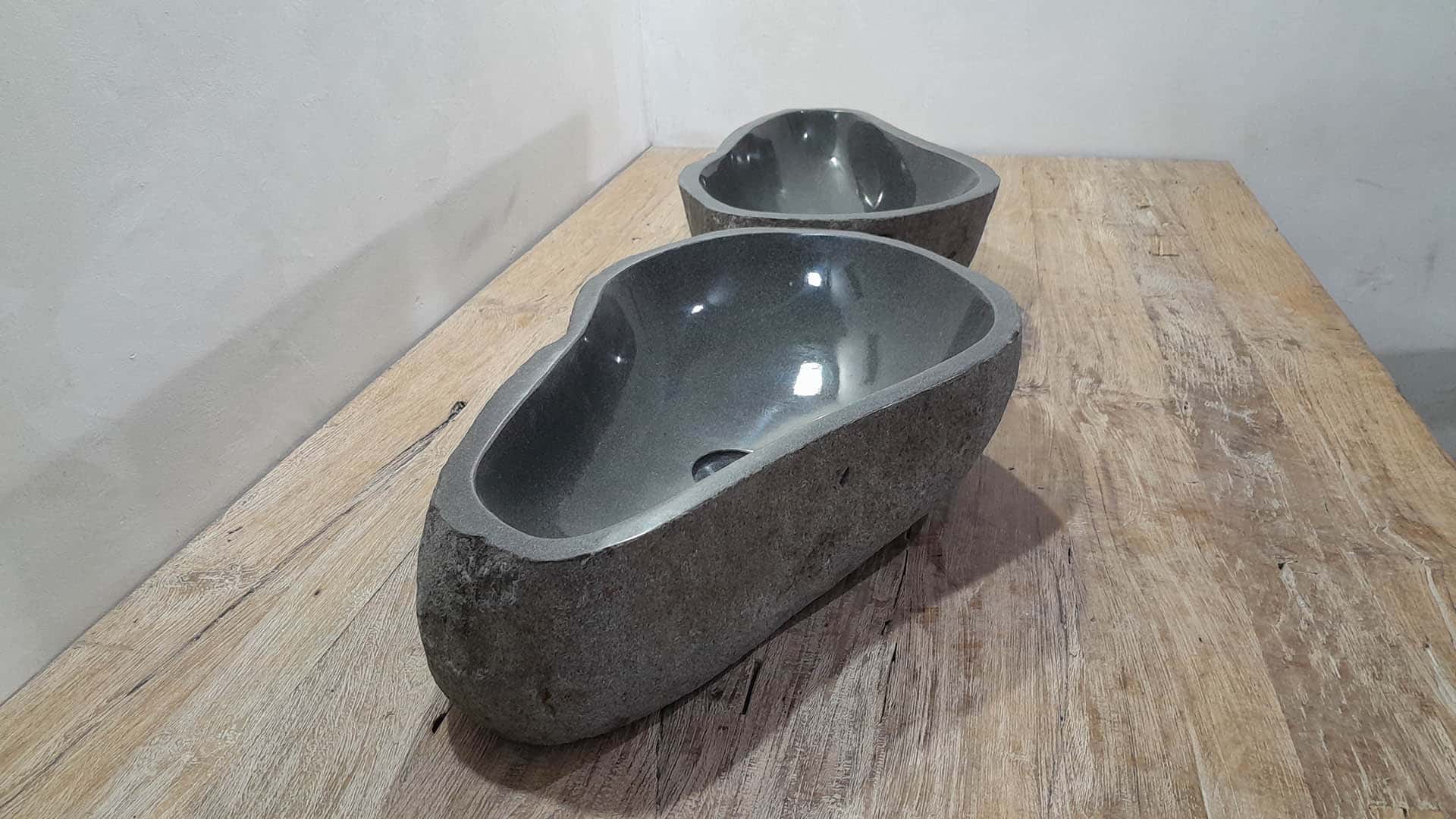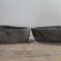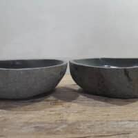 • Twee handgemaakte kommen uit één riviersteen