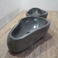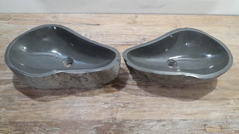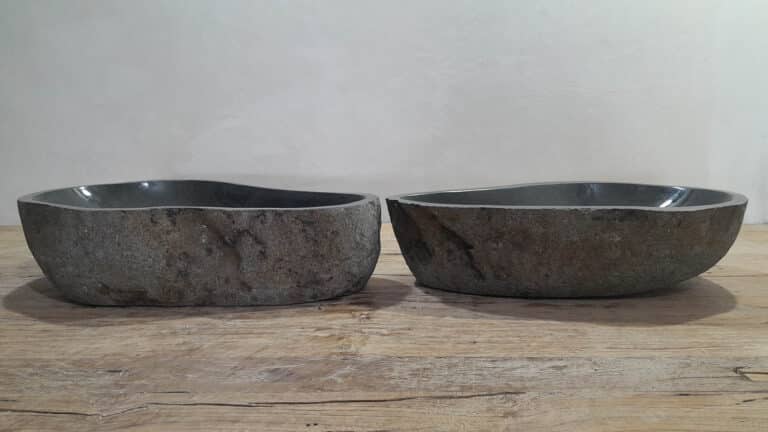 Met deze riviersteen waskom set haal je een bijzonder natuurproduct in huis. Deze set bestaat uit twee handgemaakte waskommen, vervaardigd uit één riviersteen. Zo sluiten de kleur, het formaat en de tekening in de natuursteen waskom perfect op elkaar aan, terwijl beide kommen hun eigen natuurlijke variatie behouden. Ideaal voor een tweepersoons badkamermeubel.