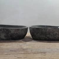 Elke set wordt volledig met de hand gemaakt uit massief natuursteen. De binnenzijde is glad gepolijst voor optimale waterafvoer en eenvoudig onderhoud, terwijl de buitenzijde ruw blijft en het stoere, natuurlijke karakter behoudt.