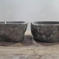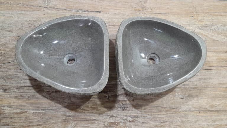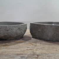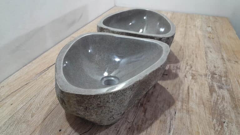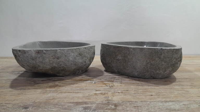 Met deze riviersteen waskom set haal je een bijzonder natuurproduct in huis. Deze set bestaat uit twee handgemaakte waskommen, vervaardigd uit één riviersteen. Zo sluiten de kleur, het formaat en de tekening in de natuursteen waskom perfect op elkaar aan, terwijl beide kommen hun eigen natuurlijke variatie behouden. Ideaal voor een tweepersoons badkamermeubel.