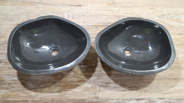 Met deze riviersteen waskom set haal je een bijzonder natuurproduct in huis. Deze set bestaat uit twee handgemaakte waskommen, vervaardigd uit één riviersteen. Zo sluiten de kleur, het formaat en de tekening in de natuursteen waskom perfect op elkaar aan, terwijl beide kommen hun eigen natuurlijke variatie behouden. Ideaal voor een tweepersoons badkamermeubel.