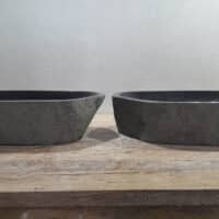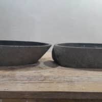 - Twee handgemaakte kommen uit één riviersteen