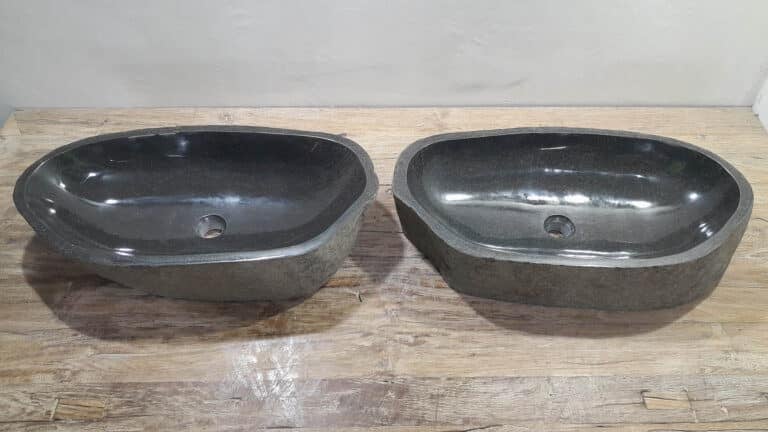 Met deze riviersteen waskom set haal je een bijzonder natuurproduct in huis. Deze set bestaat uit twee handgemaakte waskommen, vervaardigd uit één riviersteen. Zo sluiten de kleur, het formaat en de tekening in de natuursteen waskom perfect op elkaar aan, terwijl beide kommen hun eigen natuurlijke variatie behouden. Ideaal voor een tweepersoons badkamermeubel.