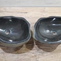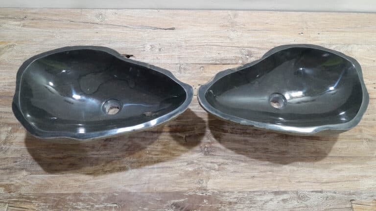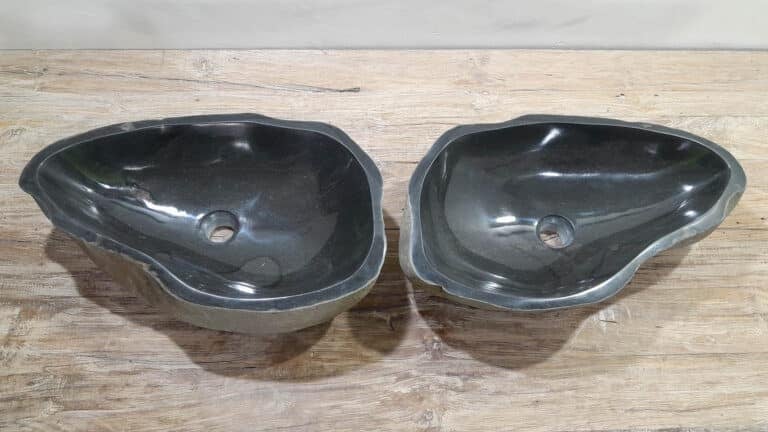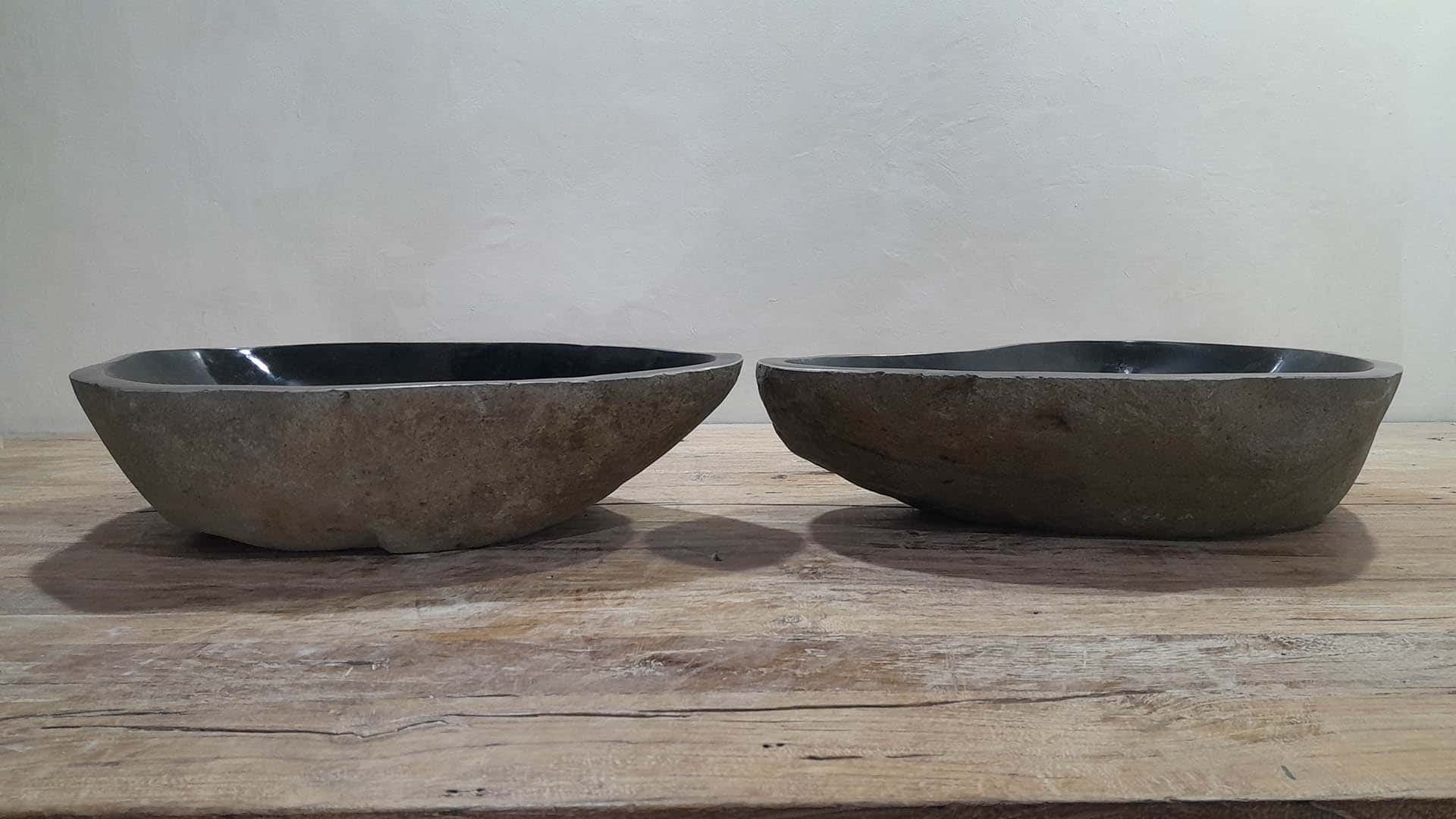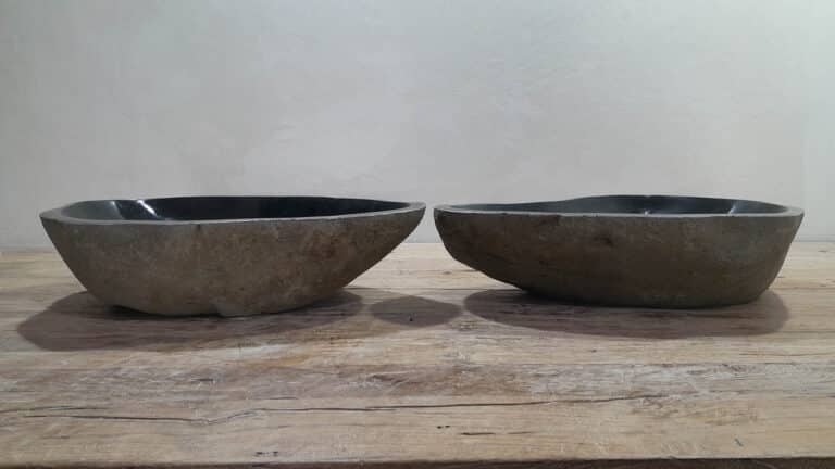 Met deze riviersteen waskom set haal je een bijzonder natuurproduct in huis. Deze set bestaat uit twee handgemaakte waskommen, vervaardigd uit één riviersteen. Zo sluiten de kleur, het formaat en de tekening in de natuursteen waskom perfect op elkaar aan, terwijl beide kommen hun eigen natuurlijke variatie behouden. Ideaal voor een tweepersoons badkamermeubel.