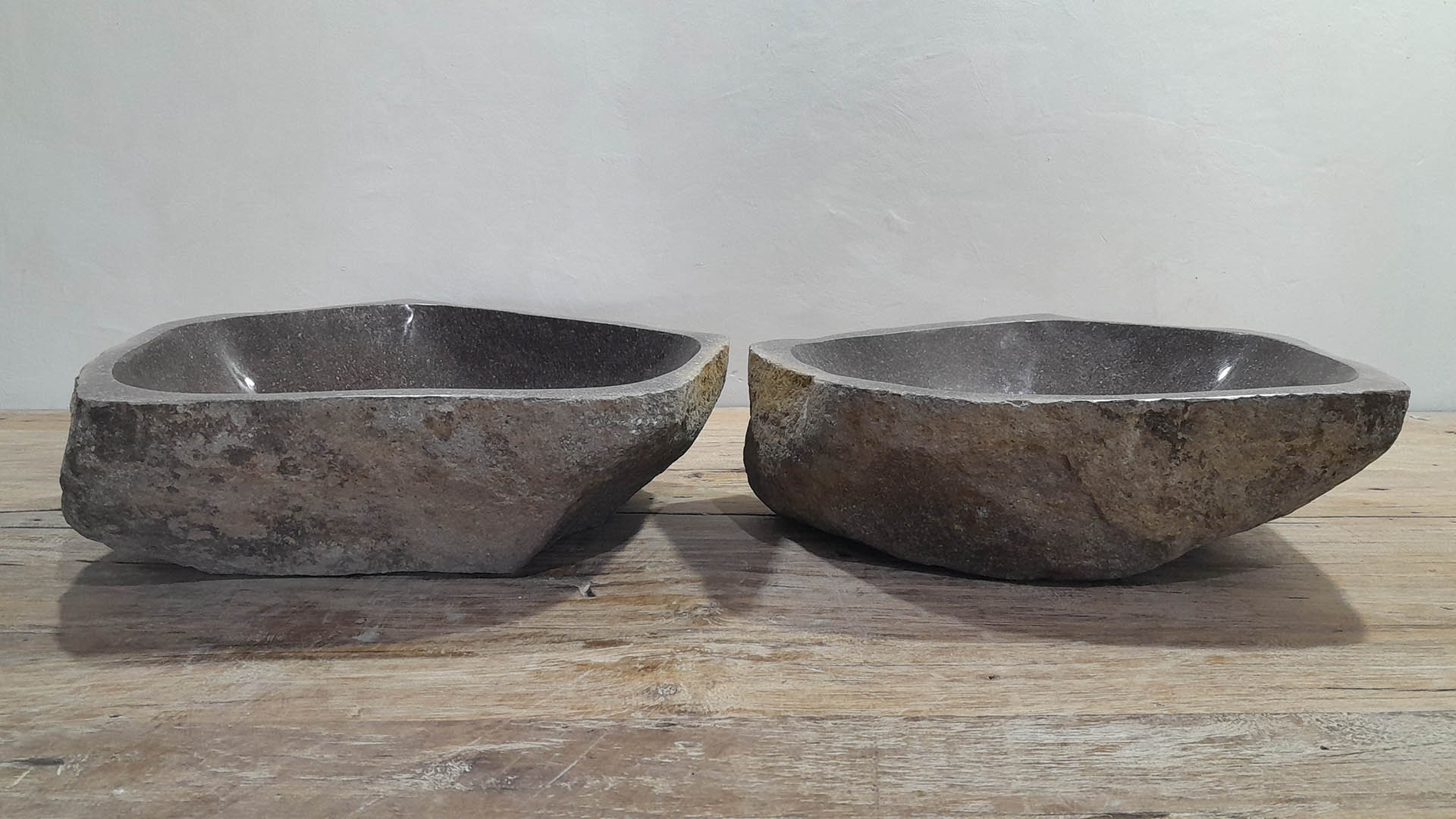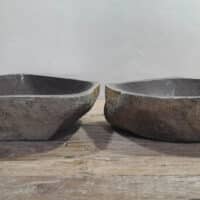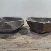 • Twee handgemaakte kommen uit één riviersteen