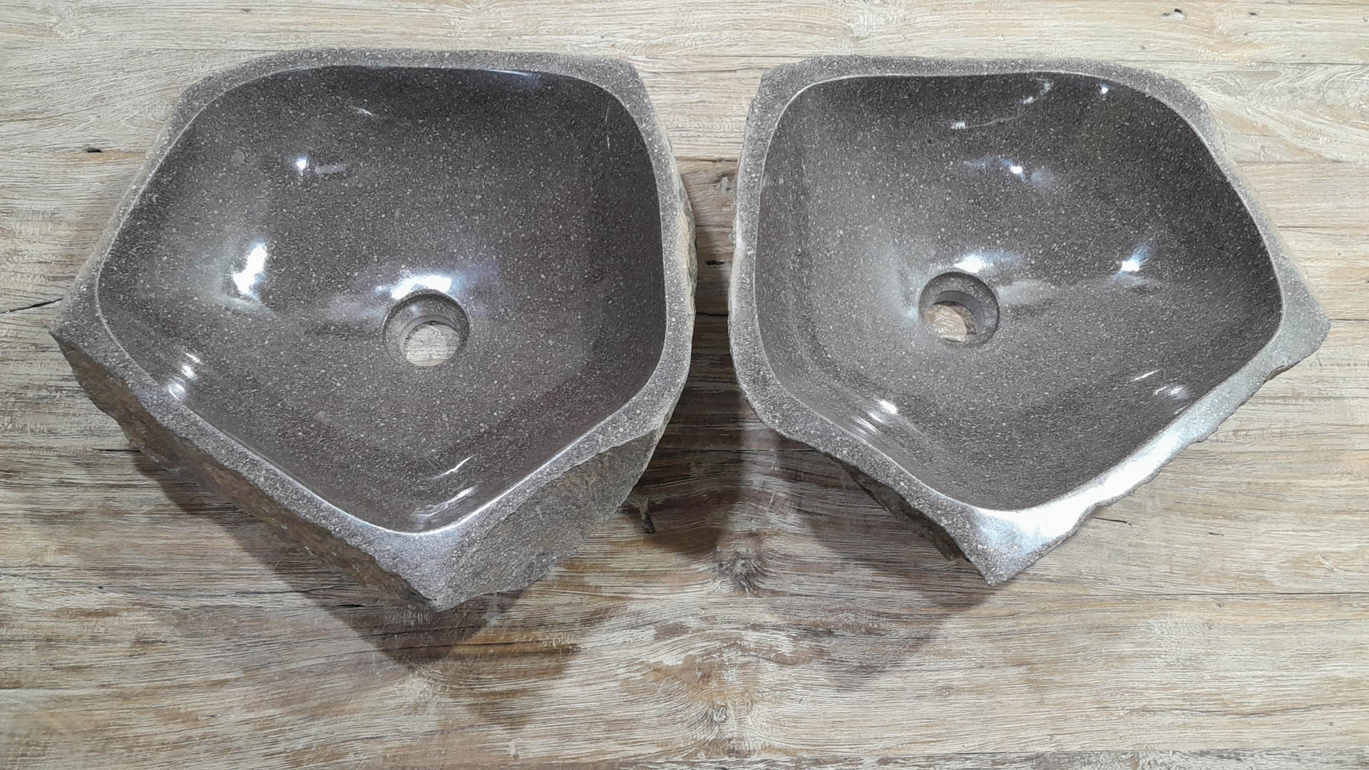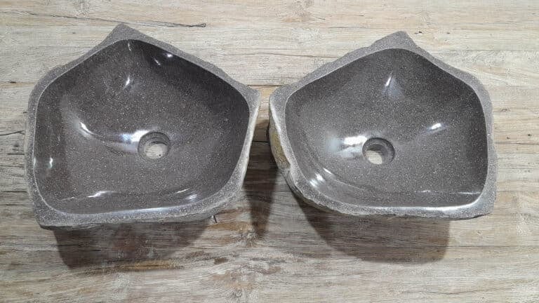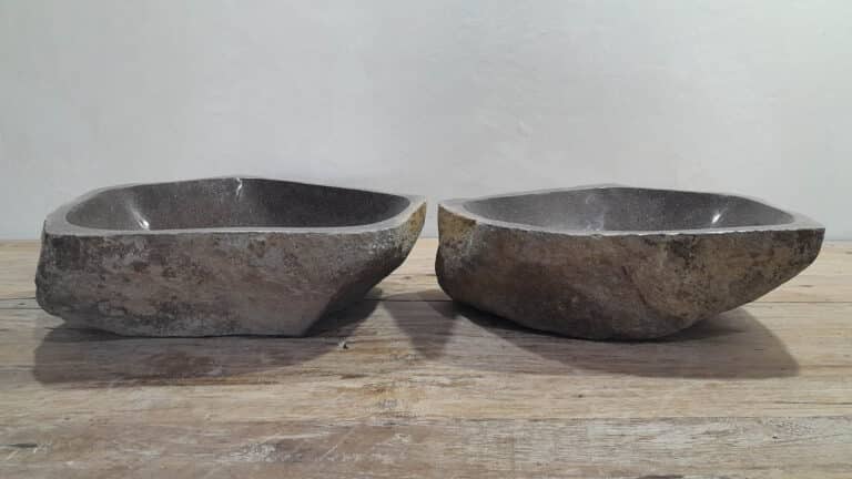 Met deze riviersteen waskom set haal je een bijzonder natuurproduct in huis. Deze set bestaat uit twee handgemaakte waskommen, vervaardigd uit één riviersteen. Zo sluiten de kleur, het formaat en de tekening in de natuursteen waskom perfect op elkaar aan, terwijl beide kommen hun eigen natuurlijke variatie behouden. Ideaal voor een tweepersoons badkamermeubel.
