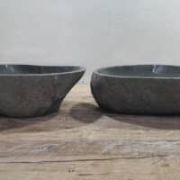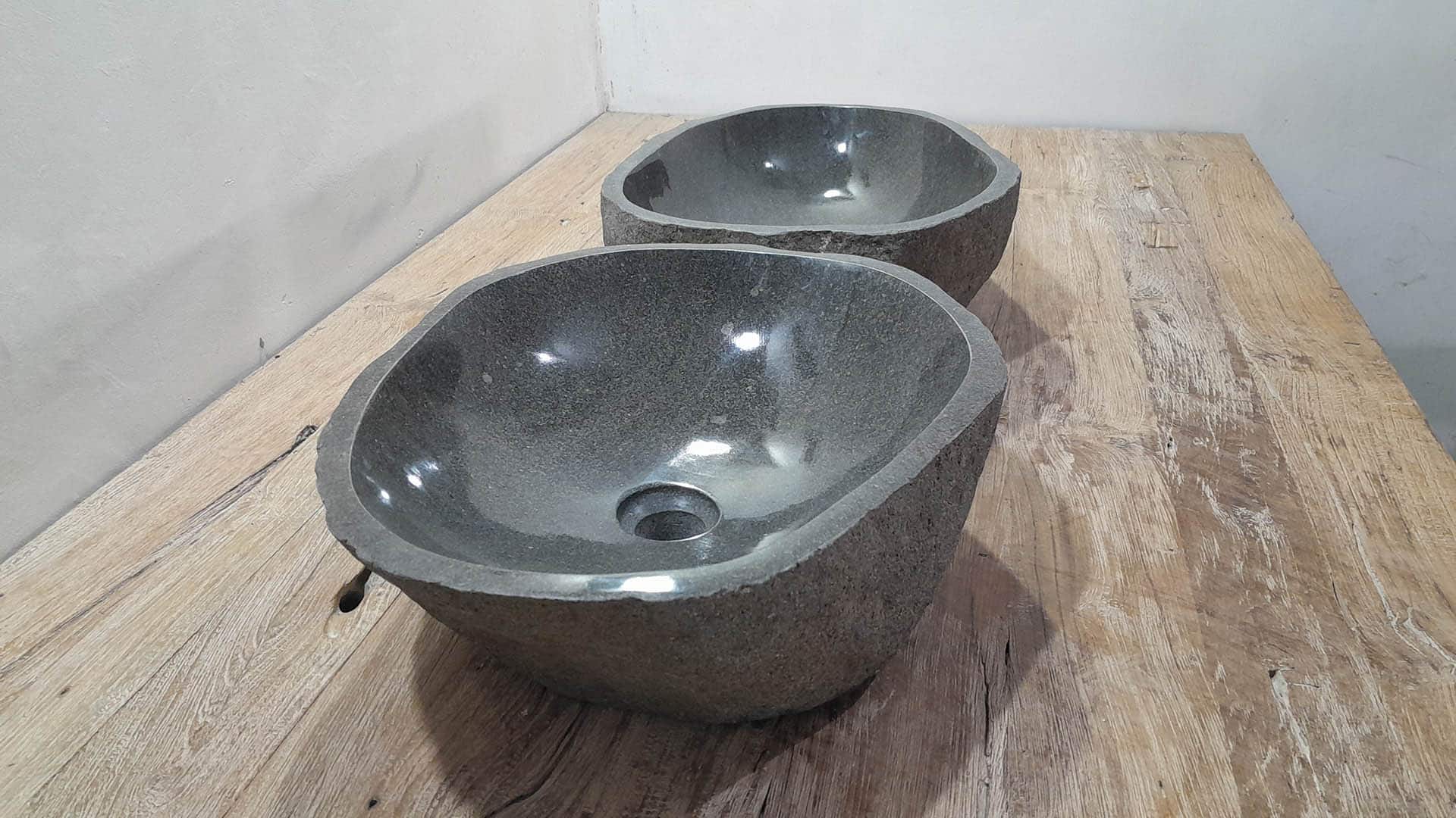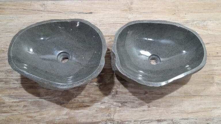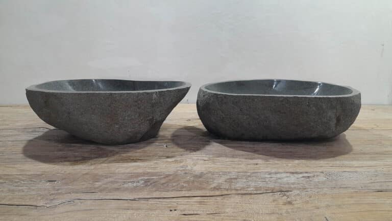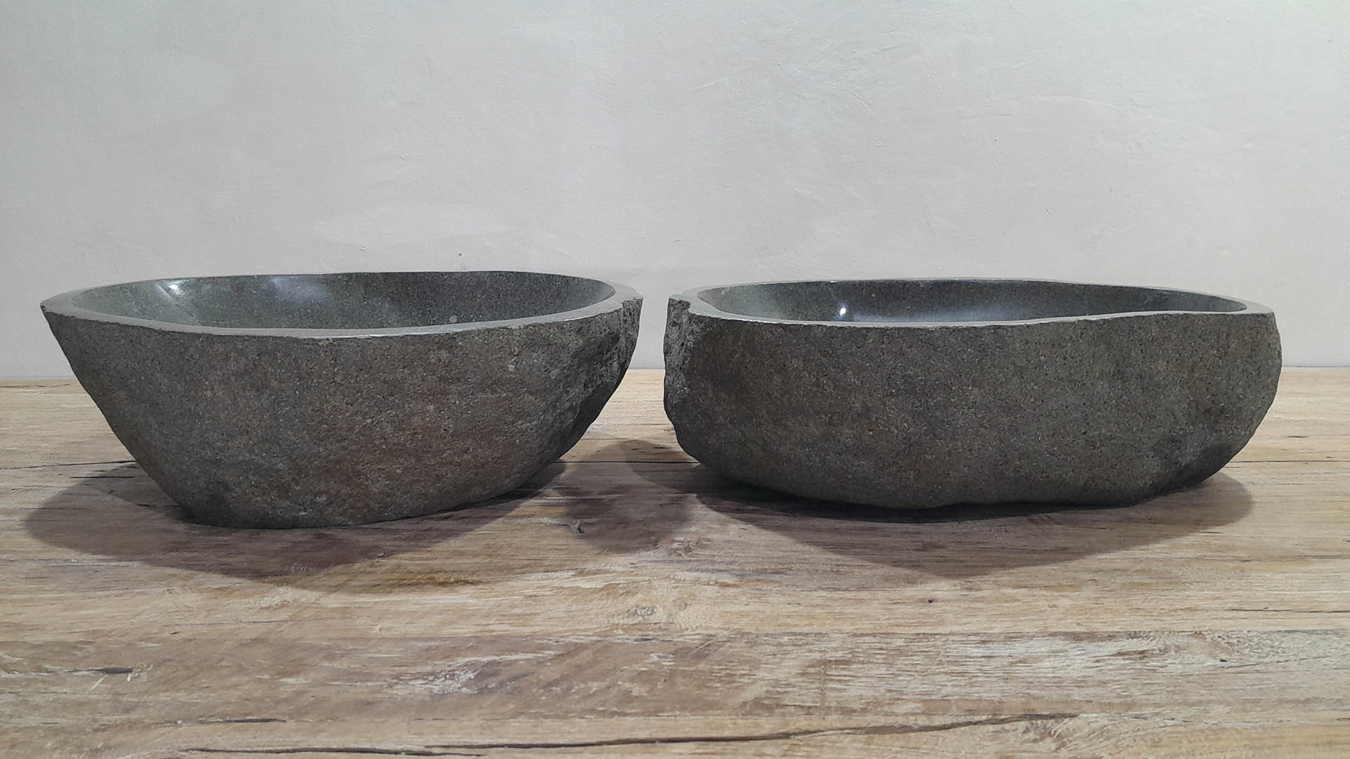 Met deze riviersteen waskom set haal je een bijzonder natuurproduct in huis. Deze set bestaat uit twee handgemaakte waskommen, vervaardigd uit één riviersteen. Zo sluiten de kleur, het formaat en de tekening in de natuursteen waskom perfect op elkaar aan, terwijl beide kommen hun eigen natuurlijke variatie behouden. Ideaal voor een tweepersoons badkamermeubel.