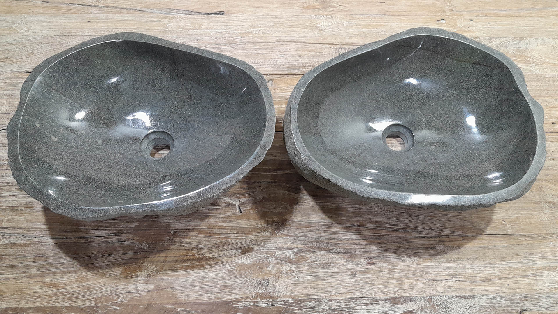 Wasbakken riviersteen set RM250329AB, 47x38x15 cm