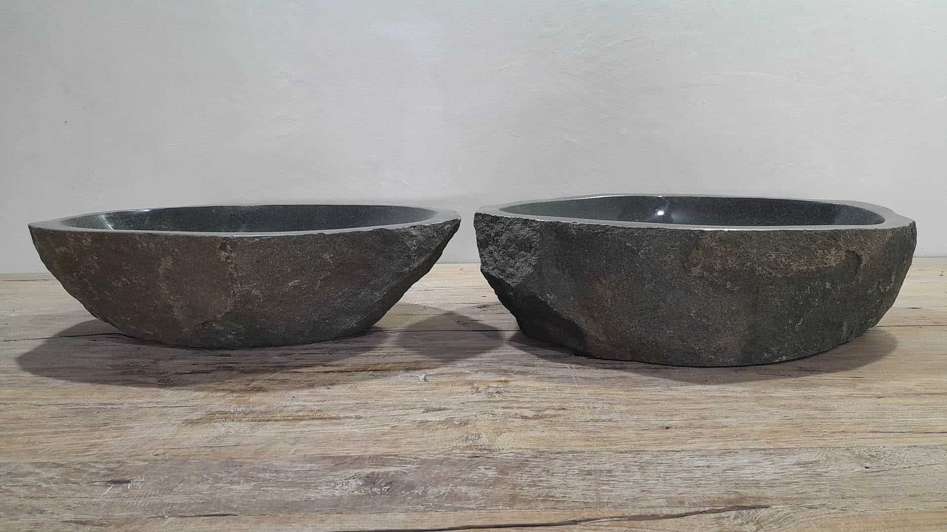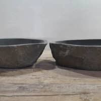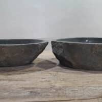 • Twee handgemaakte kommen uit één riviersteen