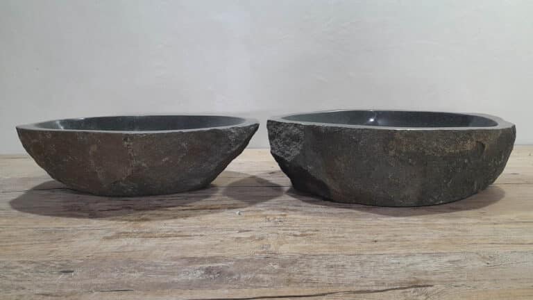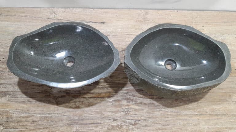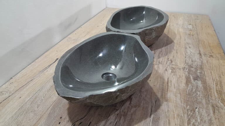Met deze riviersteen waskom set haal je een bijzonder natuurproduct in huis. Deze set bestaat uit twee handgemaakte waskommen, vervaardigd uit één riviersteen. Zo sluiten de kleur, het formaat en de tekening in de natuursteen waskom perfect op elkaar aan, terwijl beide kommen hun eigen natuurlijke variatie behouden. Ideaal voor een tweepersoons badkamermeubel.
