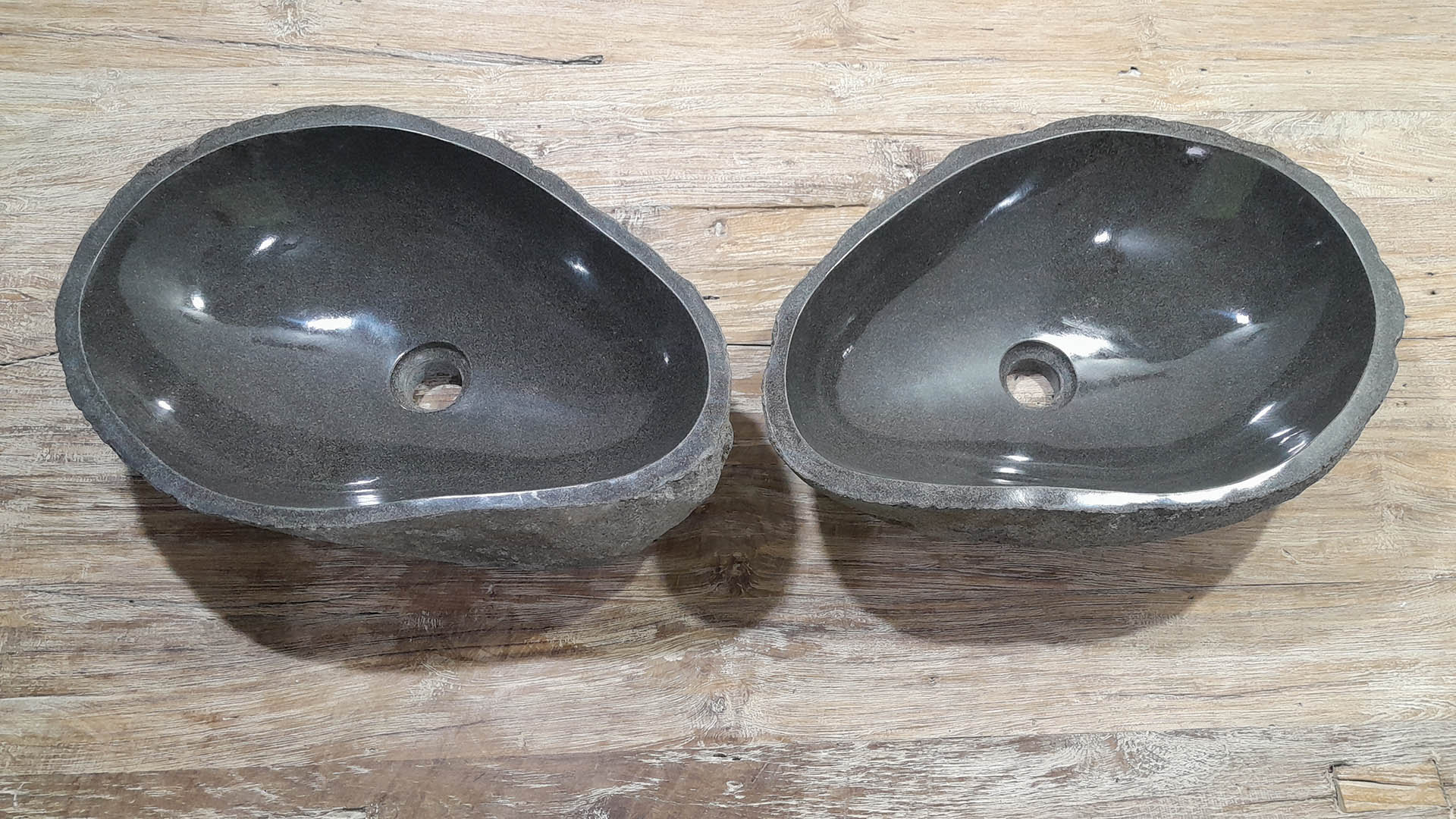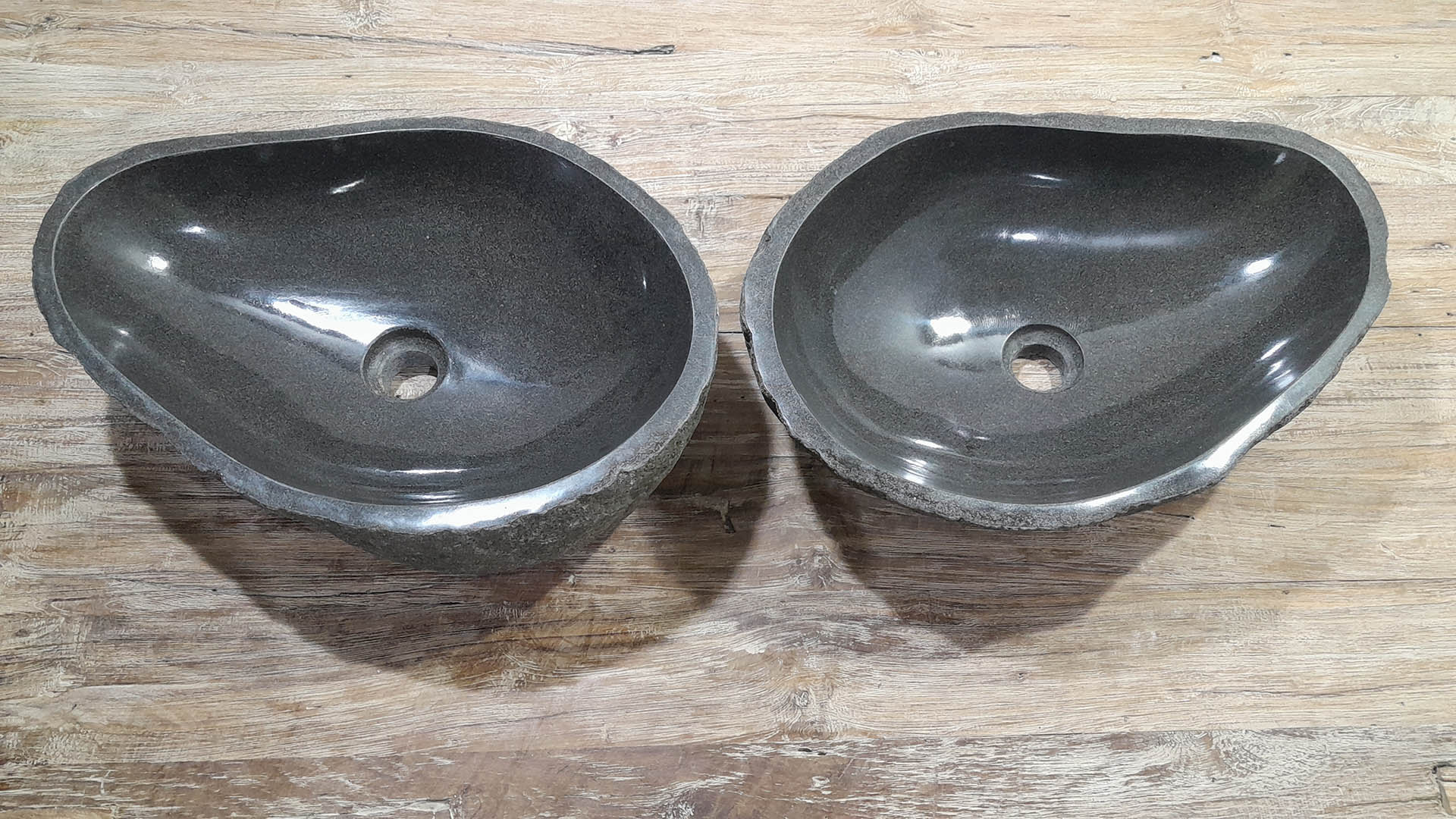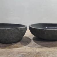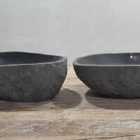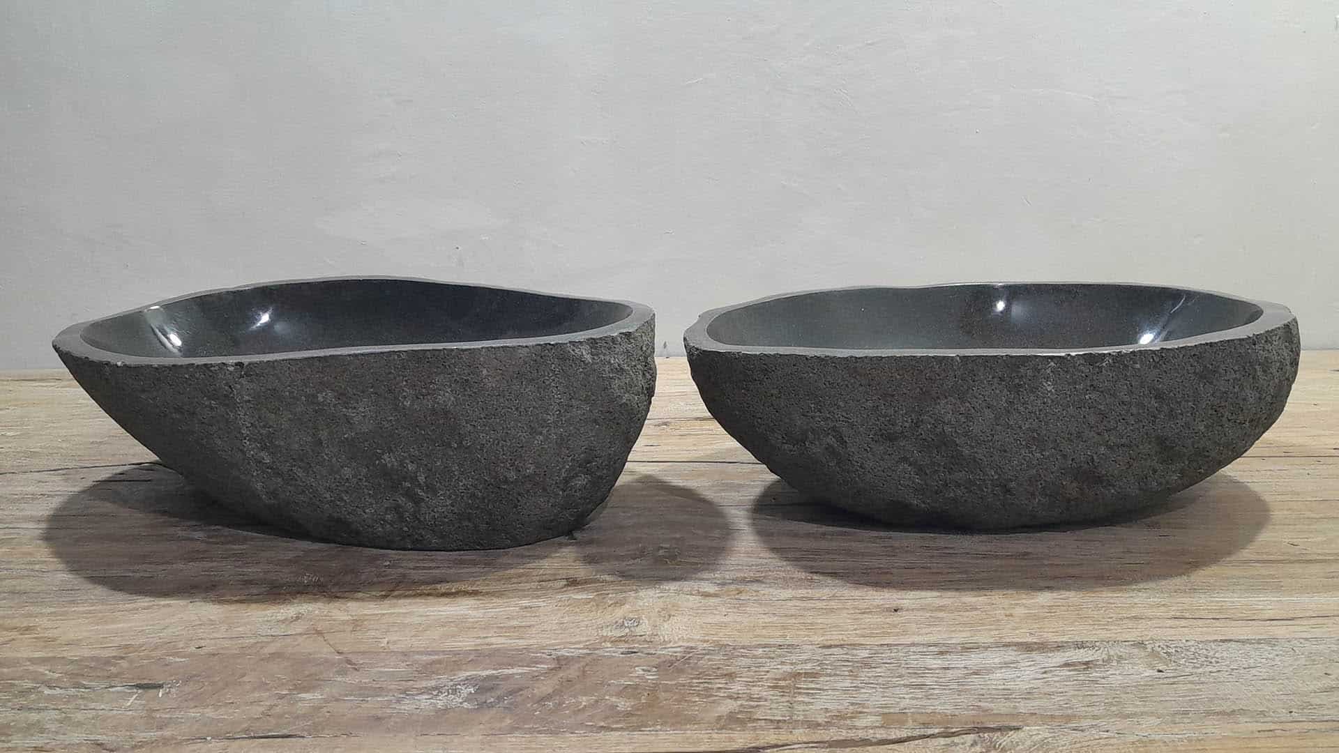 - Twee handgemaakte kommen uit één riviersteen