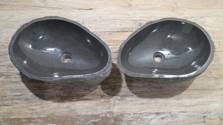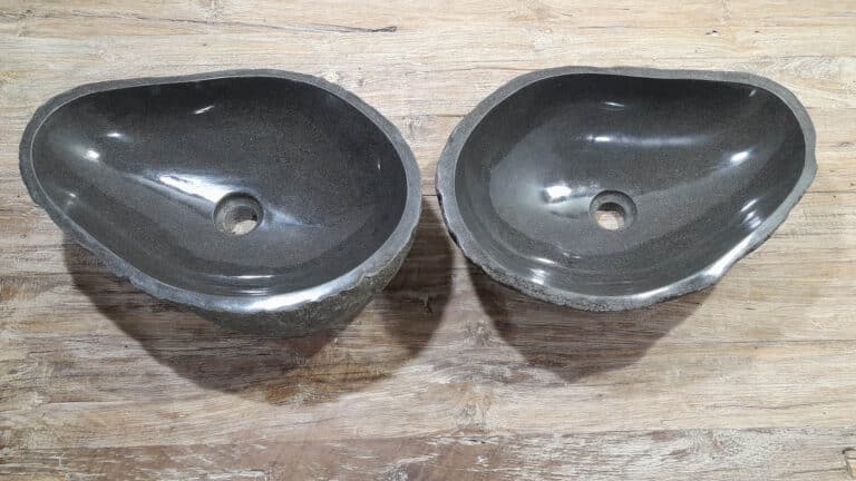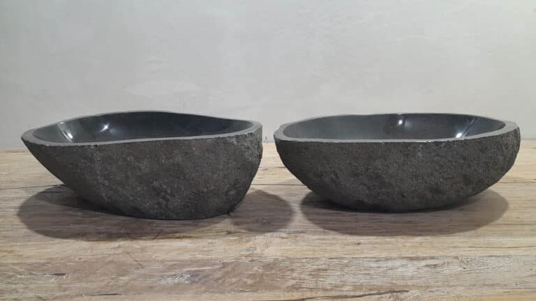 Met deze riviersteen waskom set haal je een bijzonder natuurproduct in huis. Deze set bestaat uit twee handgemaakte waskommen, vervaardigd uit één riviersteen. Zo sluiten de kleur, het formaat en de tekening in de natuursteen waskom perfect op elkaar aan, terwijl beide kommen hun eigen natuurlijke variatie behouden. Ideaal voor een tweepersoons badkamermeubel.