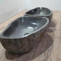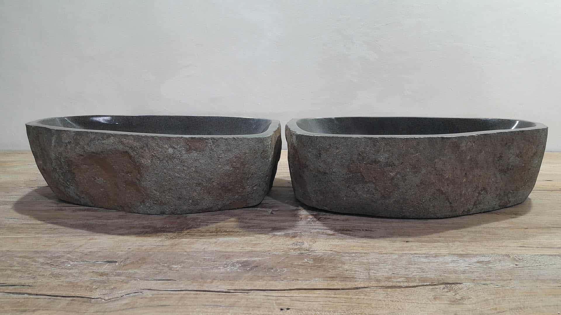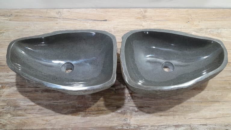 Met deze riviersteen waskom set haal je een bijzonder natuurproduct in huis. Deze set bestaat uit twee handgemaakte waskommen, vervaardigd uit één riviersteen. Zo sluiten de kleur, het formaat en de tekening in de natuursteen waskom perfect op elkaar aan, terwijl beide kommen hun eigen natuurlijke variatie behouden. Ideaal voor een tweepersoons badkamermeubel.