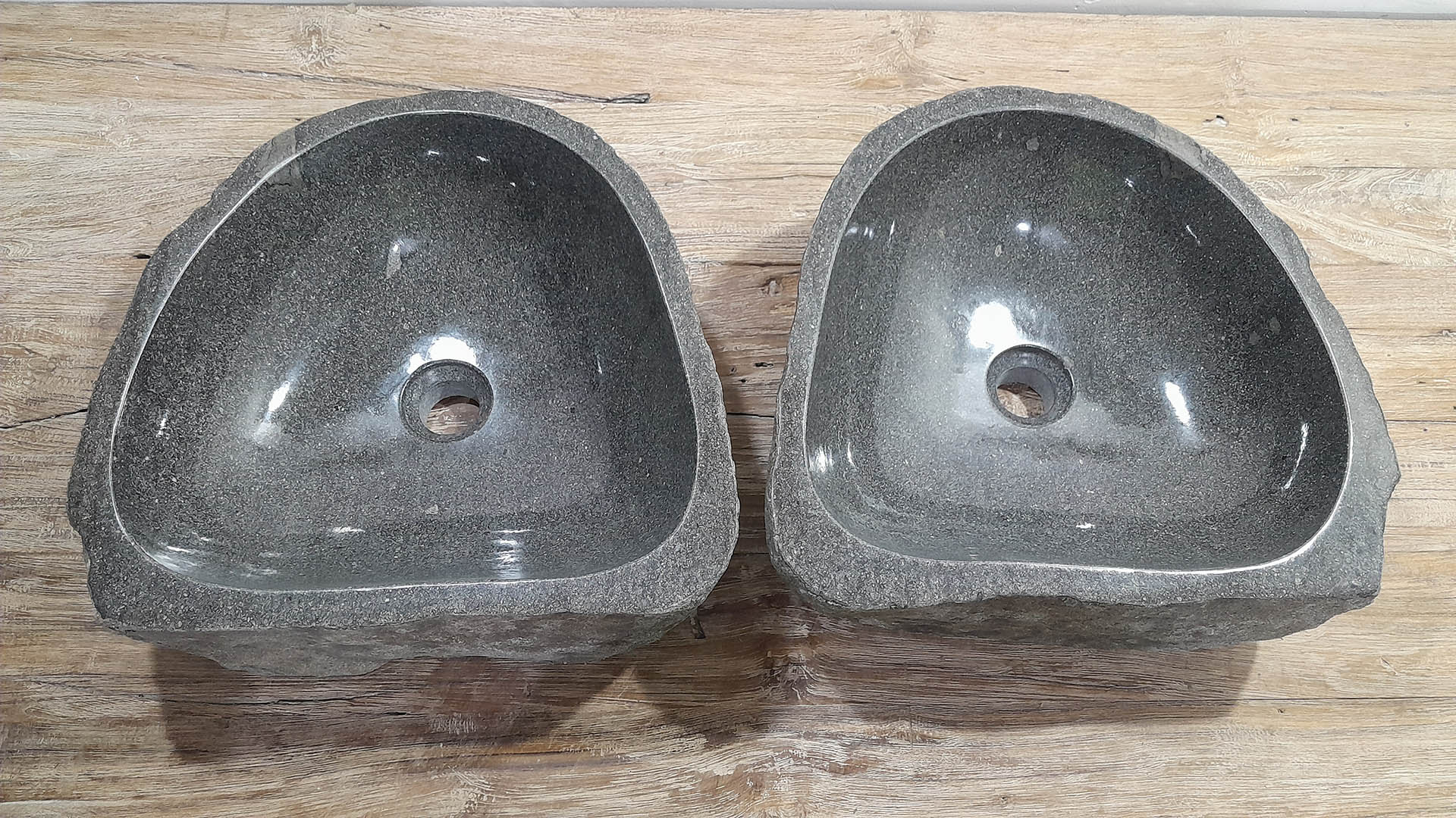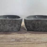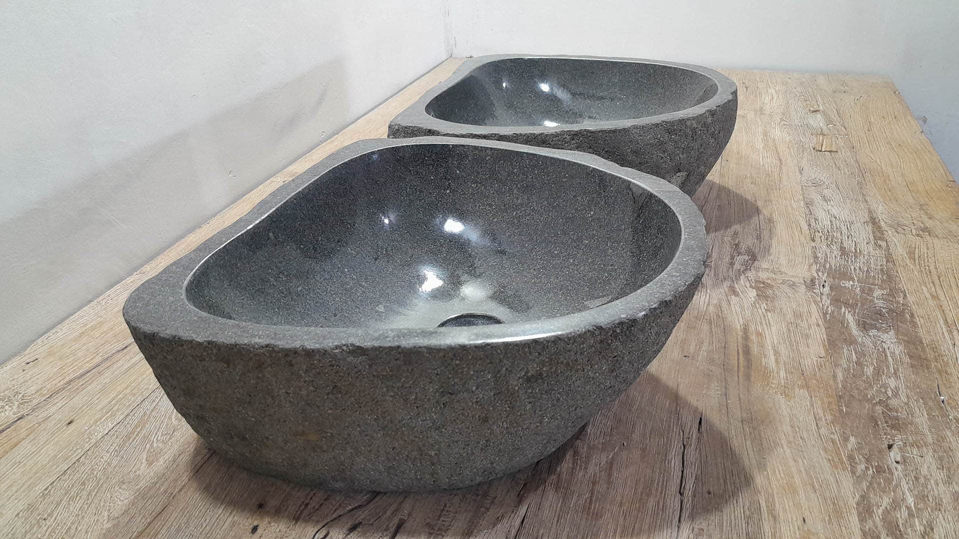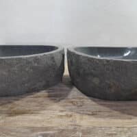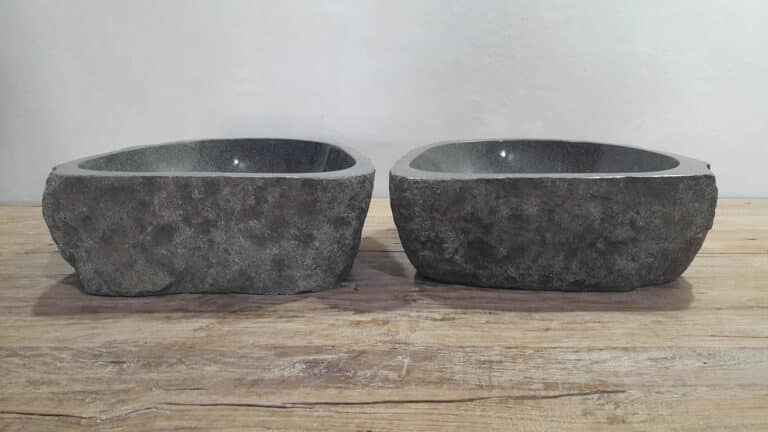 Met deze riviersteen waskom set haal je een bijzonder natuurproduct in huis. Deze set bestaat uit twee handgemaakte waskommen, vervaardigd uit één riviersteen. Zo sluiten de kleur, het formaat en de tekening in de natuursteen waskom perfect op elkaar aan, terwijl beide kommen hun eigen natuurlijke variatie behouden. Ideaal voor een tweepersoons badkamermeubel.