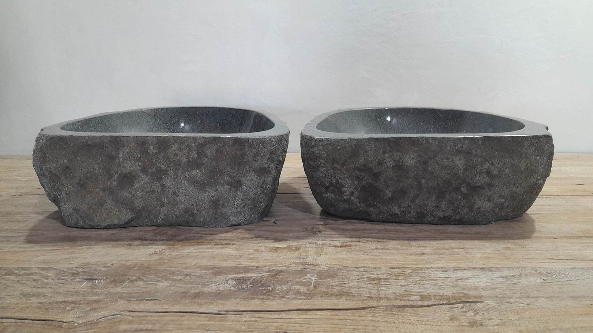 • Twee handgemaakte kommen uit één riviersteen