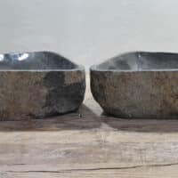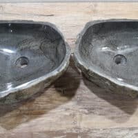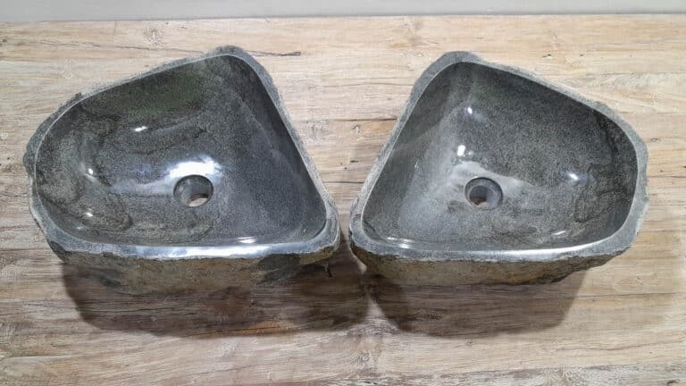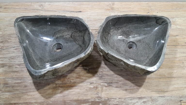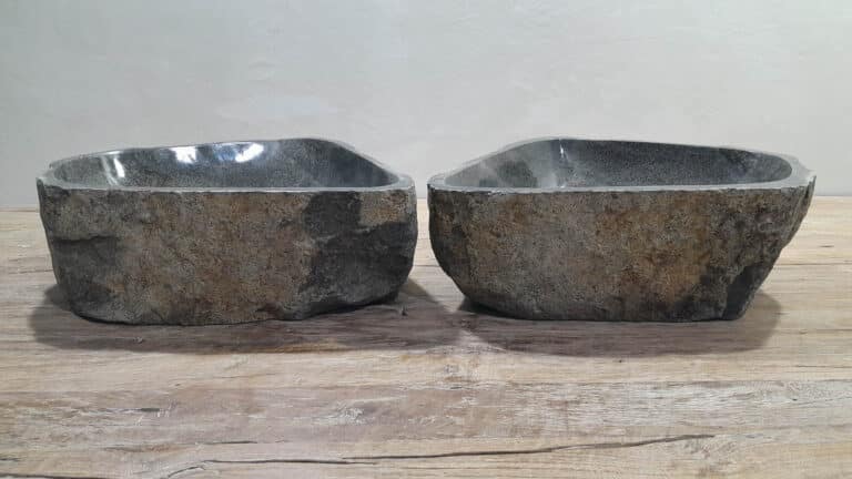 Met deze riviersteen waskom set haal je een bijzonder natuurproduct in huis. Deze set bestaat uit twee handgemaakte waskommen, vervaardigd uit één riviersteen. Zo sluiten de kleur, het formaat en de tekening in de natuursteen waskom perfect op elkaar aan, terwijl beide kommen hun eigen natuurlijke variatie behouden. Ideaal voor een tweepersoons badkamermeubel.