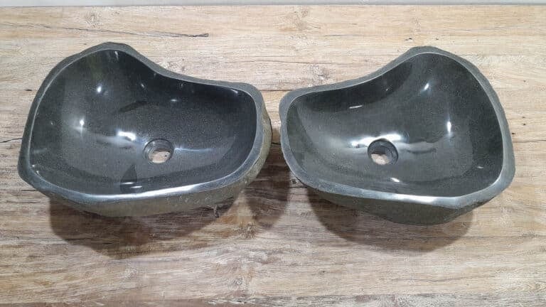 Met deze riviersteen waskom set haal je een bijzonder natuurproduct in huis. Deze set bestaat uit twee handgemaakte waskommen, vervaardigd uit één riviersteen. Zo sluiten de kleur, het formaat en de tekening in de natuursteen waskom perfect op elkaar aan, terwijl beide kommen hun eigen natuurlijke variatie behouden. Ideaal voor een tweepersoons badkamermeubel.
