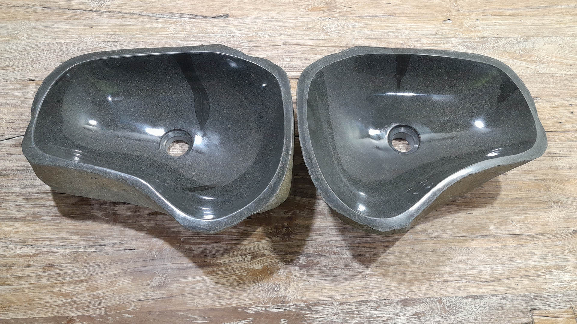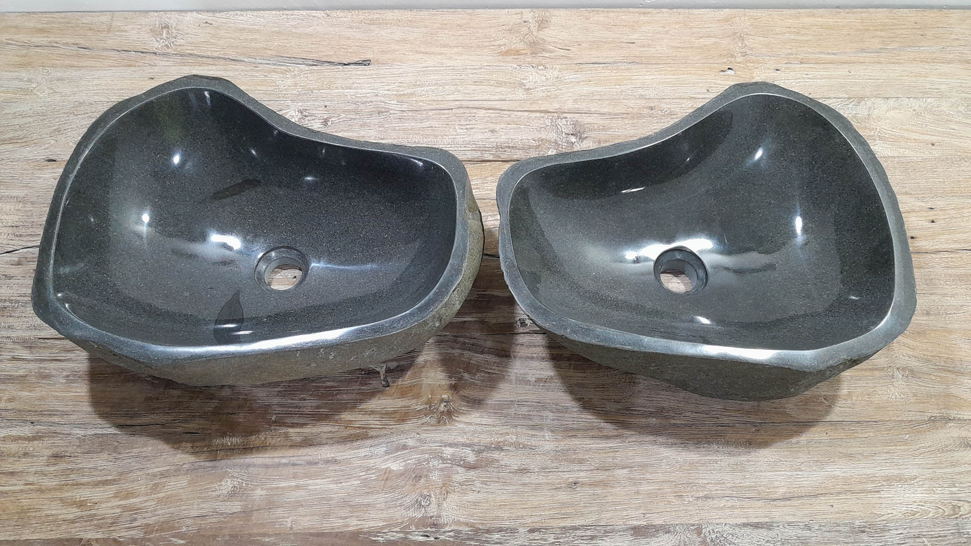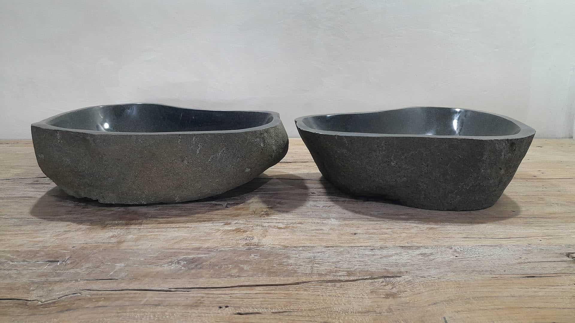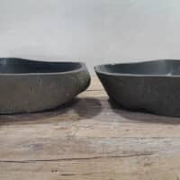 - Twee handgemaakte kommen uit één riviersteen