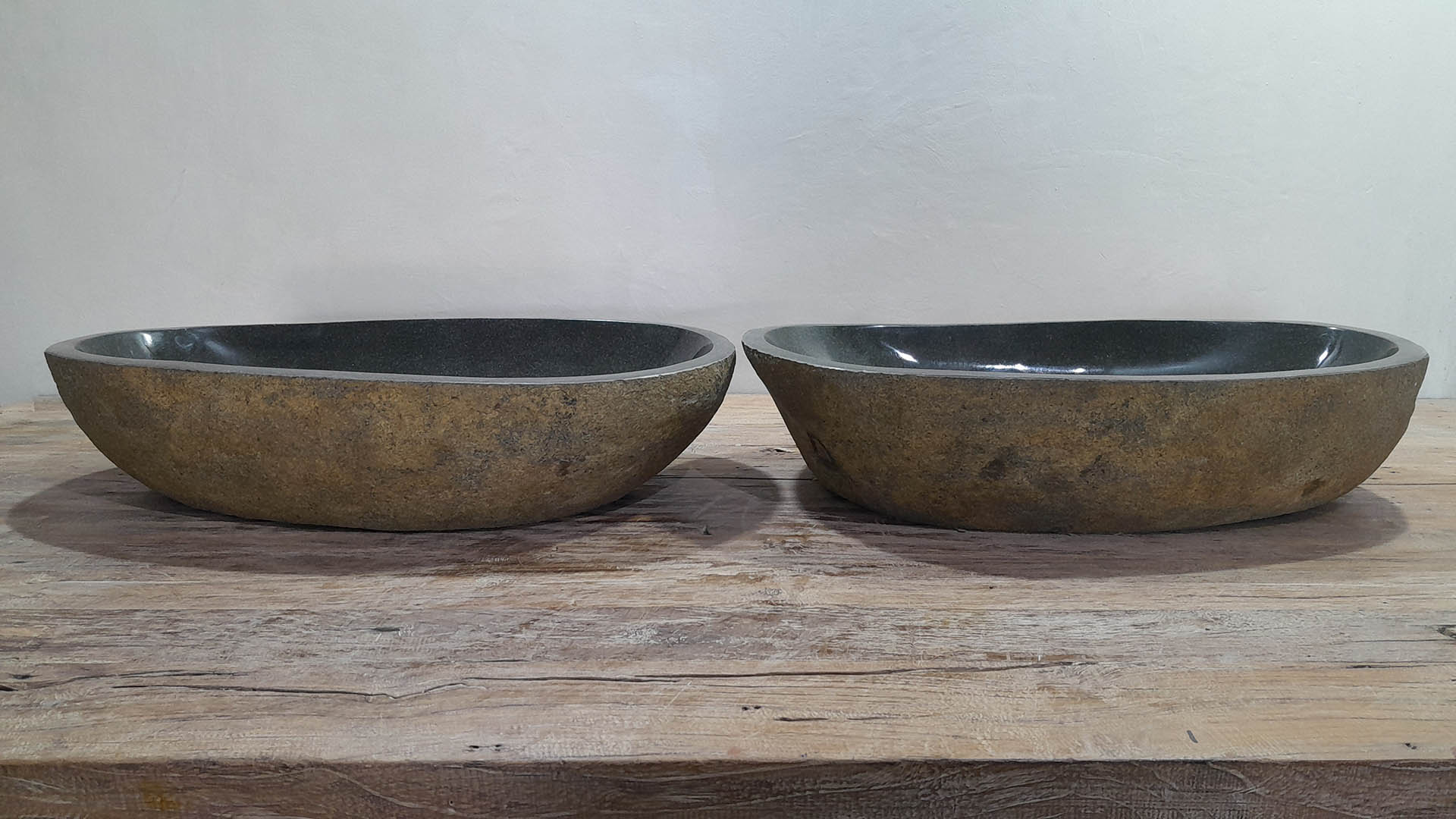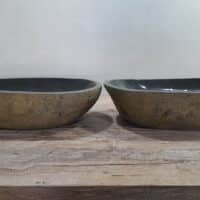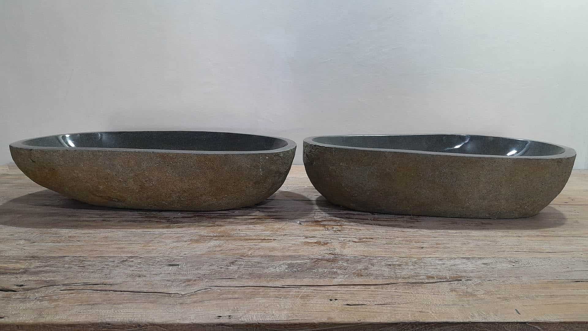 - Twee handgemaakte kommen uit één riviersteen