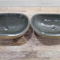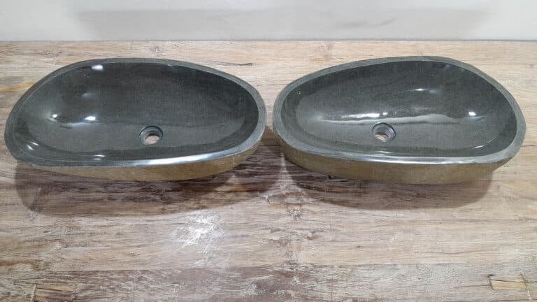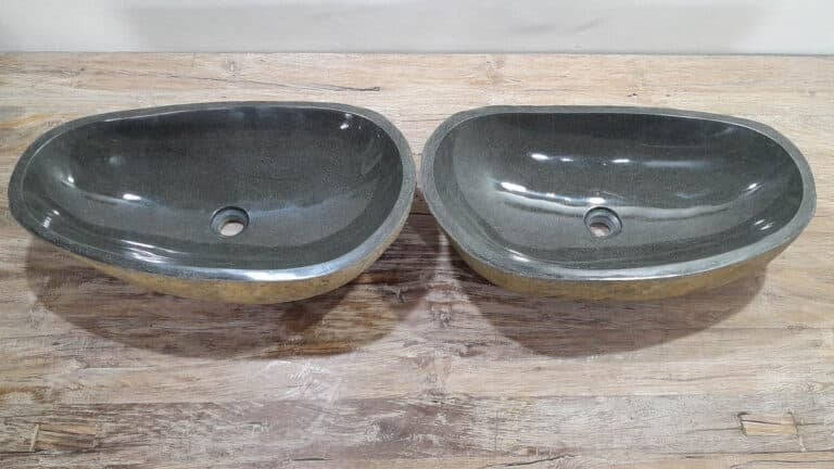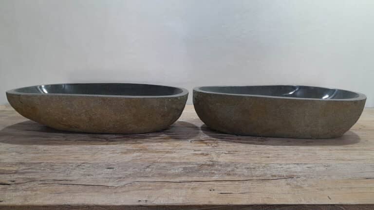 Met deze riviersteen waskom set haal je een bijzonder natuurproduct in huis. Deze set bestaat uit twee handgemaakte waskommen, vervaardigd uit één riviersteen. Zo sluiten de kleur, het formaat en de tekening in de natuursteen waskom perfect op elkaar aan, terwijl beide kommen hun eigen natuurlijke variatie behouden. Ideaal voor een tweepersoons badkamermeubel.