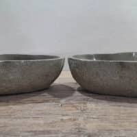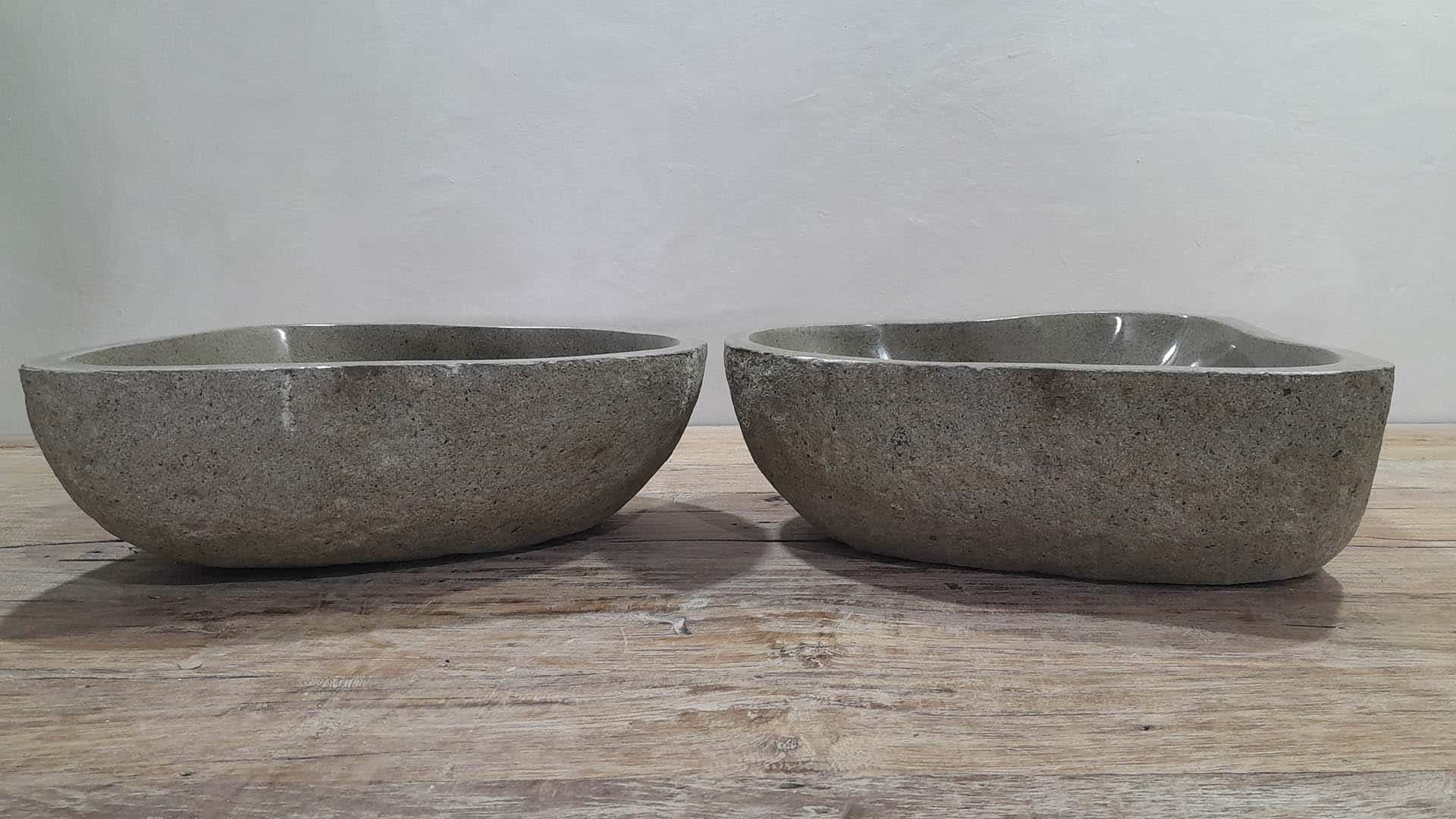 - Twee handgemaakte kommen uit één riviersteen