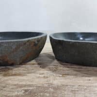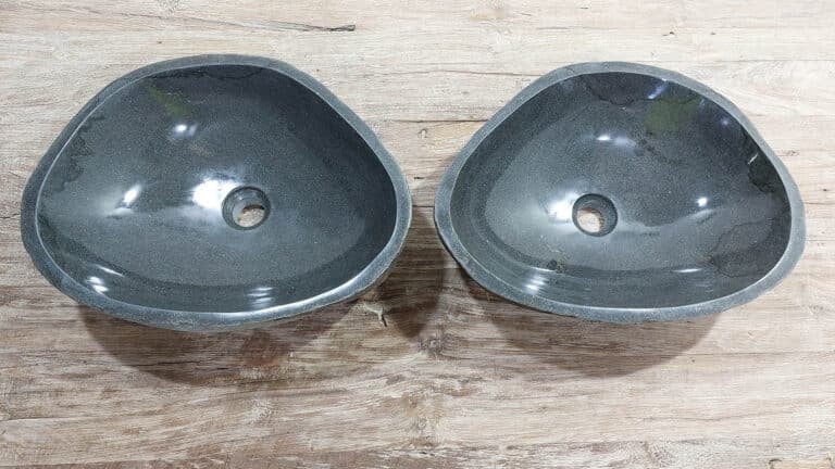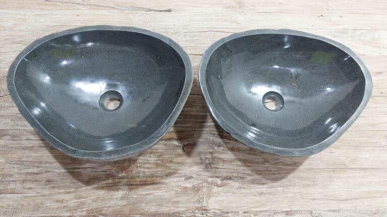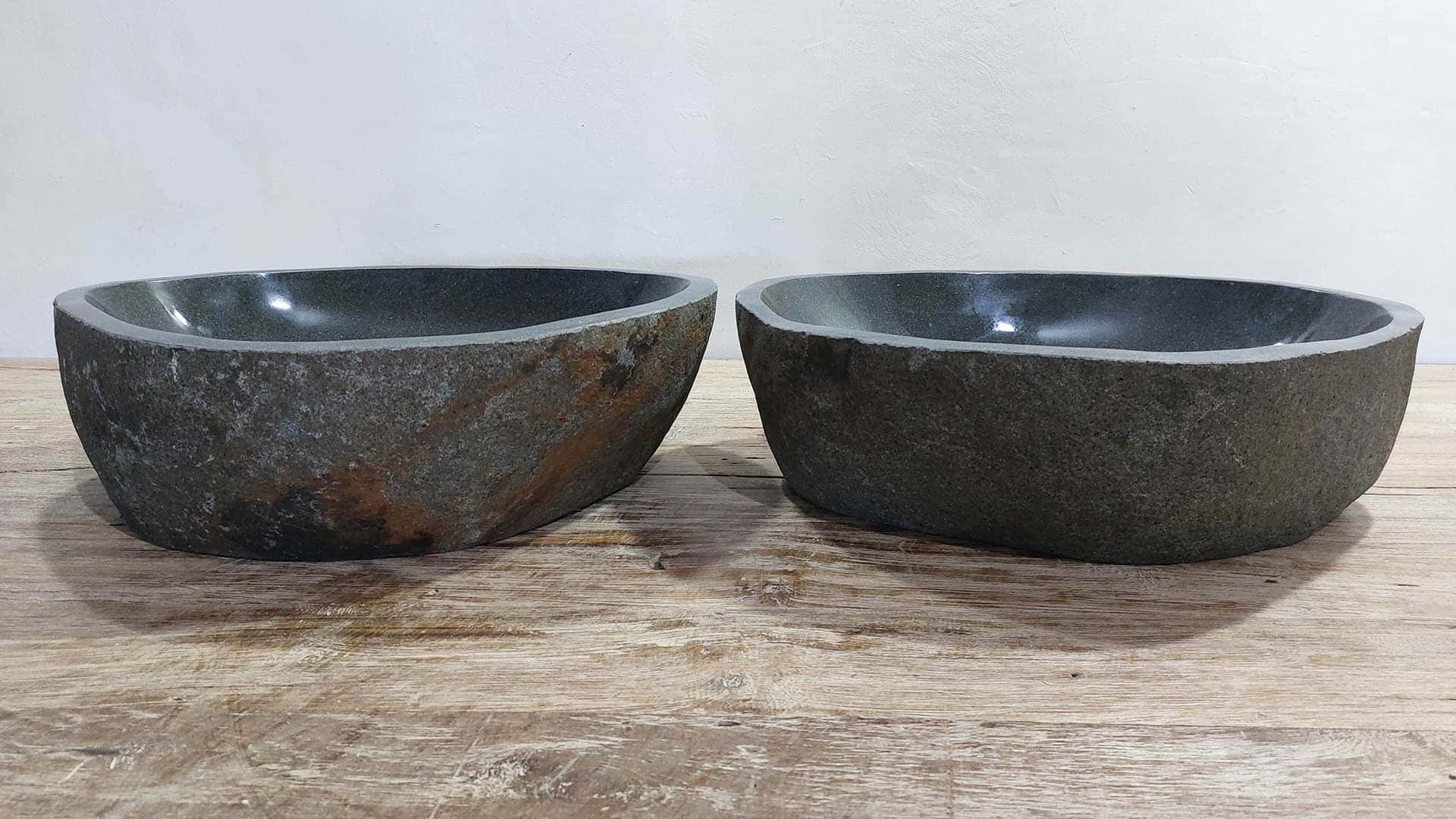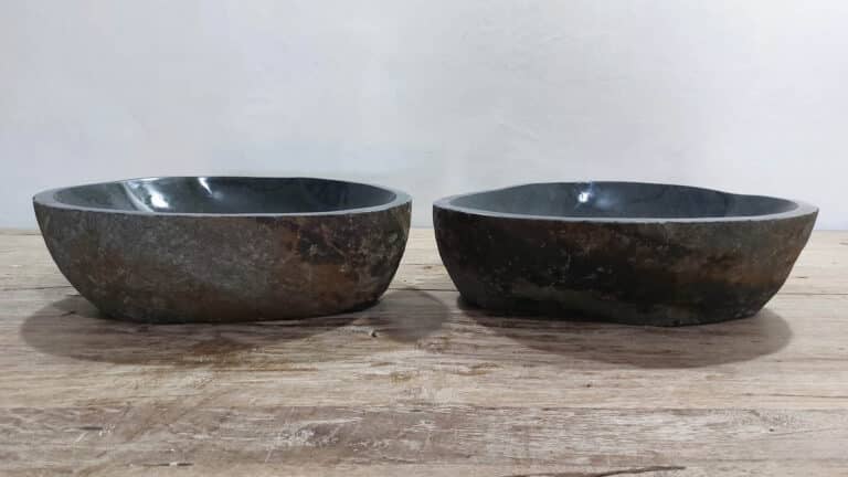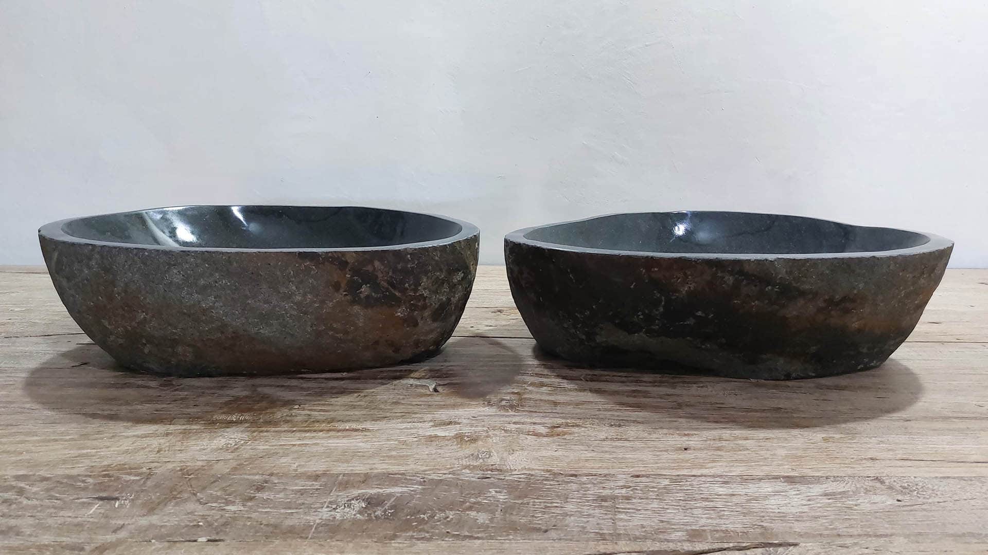Met deze riviersteen waskom set haal je een bijzonder natuurproduct in huis. Deze set bestaat uit twee handgemaakte waskommen, vervaardigd uit één riviersteen. Zo sluiten de kleur, het formaat en de tekening in de natuursteen waskom perfect op elkaar aan, terwijl beide kommen hun eigen natuurlijke variatie behouden. Ideaal voor een tweepersoons badkamermeubel.
