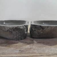 - Twee handgemaakte kommen uit één riviersteen
