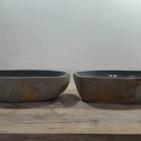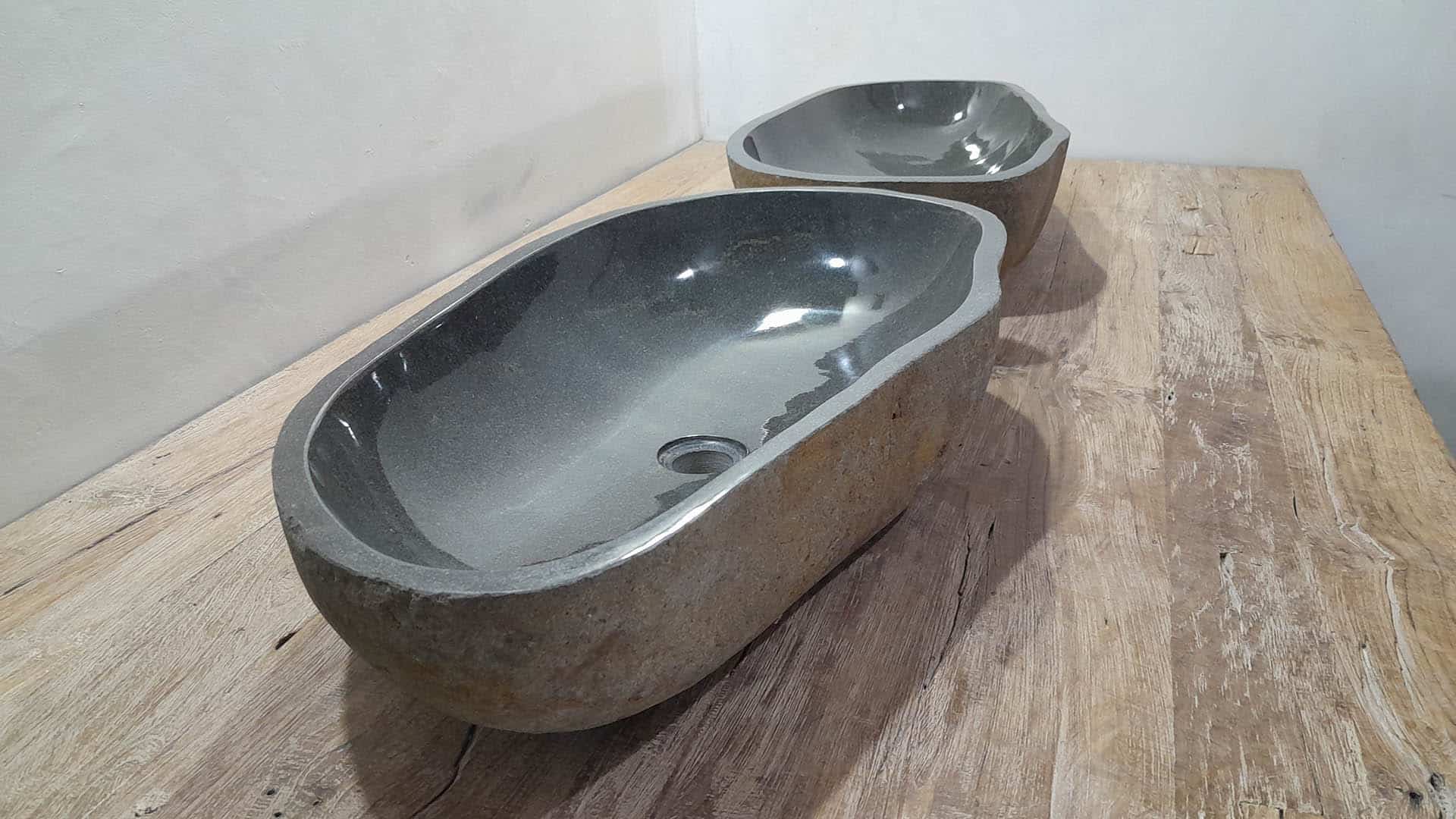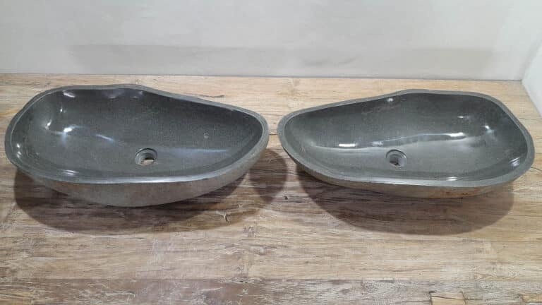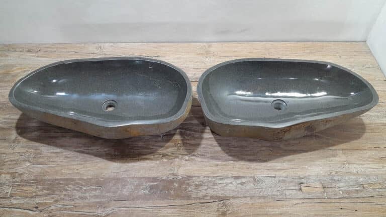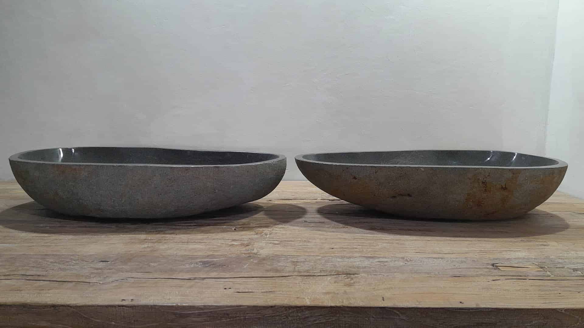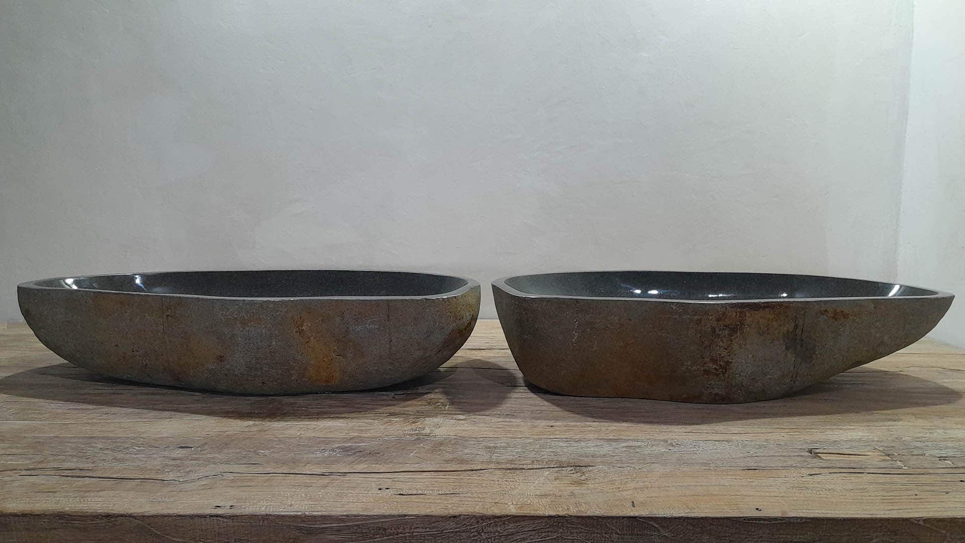 Met deze riviersteen waskom set haal je een bijzonder natuurproduct in huis. Deze set bestaat uit twee handgemaakte waskommen, vervaardigd uit één riviersteen. Zo sluiten de kleur, het formaat en de tekening in de natuursteen waskom perfect op elkaar aan, terwijl beide kommen hun eigen natuurlijke variatie behouden. Ideaal voor een tweepersoons badkamermeubel.