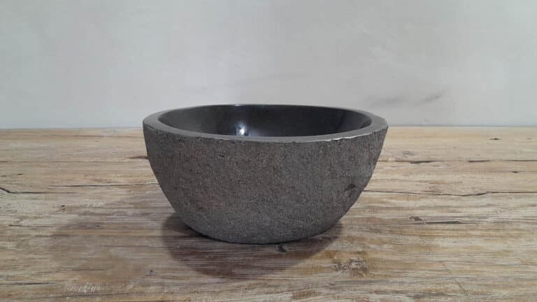 Kleine natuursteen waskom van Riviersteen. Door het compacte formaat is deze kleine riviersteen waskom ideaal voor het toilet. Elke rivierstenen waskom wordt met de hand gemaakt uit massief natuursteen. De binnenzijde van de kom is gepolijst en buitenzijde blijft onbewerkt waardoor de waskom altijd een unieke robuuste uitstraling heeft.