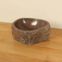 Kleine natuursteen waskom van Riviersteen. Door het compacte formaat is deze kleine riviersteen waskom ideaal voor het toilet. Elke rivierstenen waskom wordt met de hand gemaakt uit massief natuursteen. De binnenzijde van de kom is gepolijst en buitenzijde blijft onbewerkt waardoor de waskom altijd een unieke robuuste uitstraling heeft.