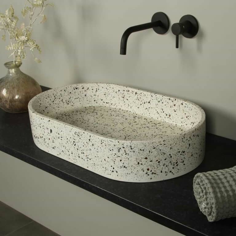 Terrazzo Wasbak Wit Ovaal 60×35 cm | TRZ-503lt